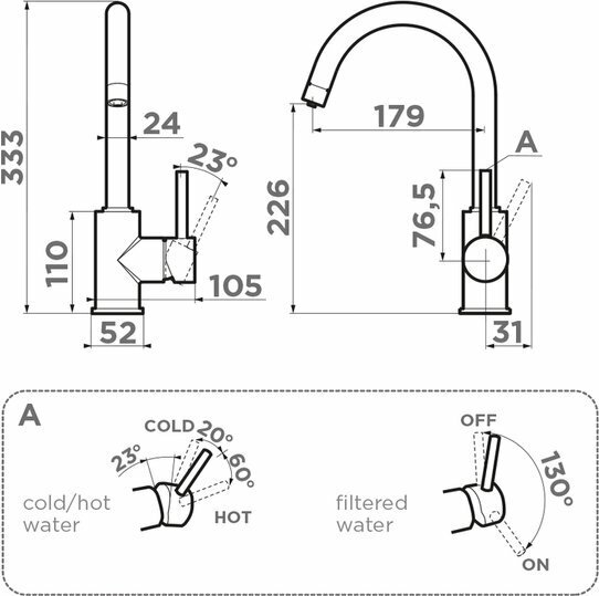 подключение фильтра для очистки воды PURE LIFE®, Multi - единый рычаг управления для горячей, холодной и питьевой воды