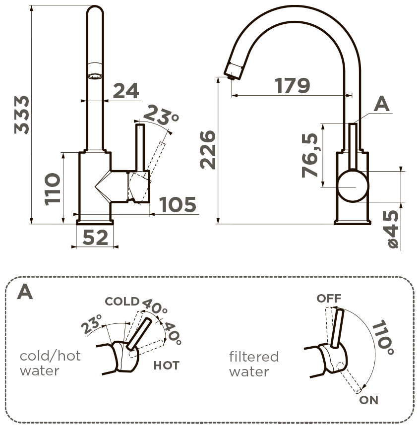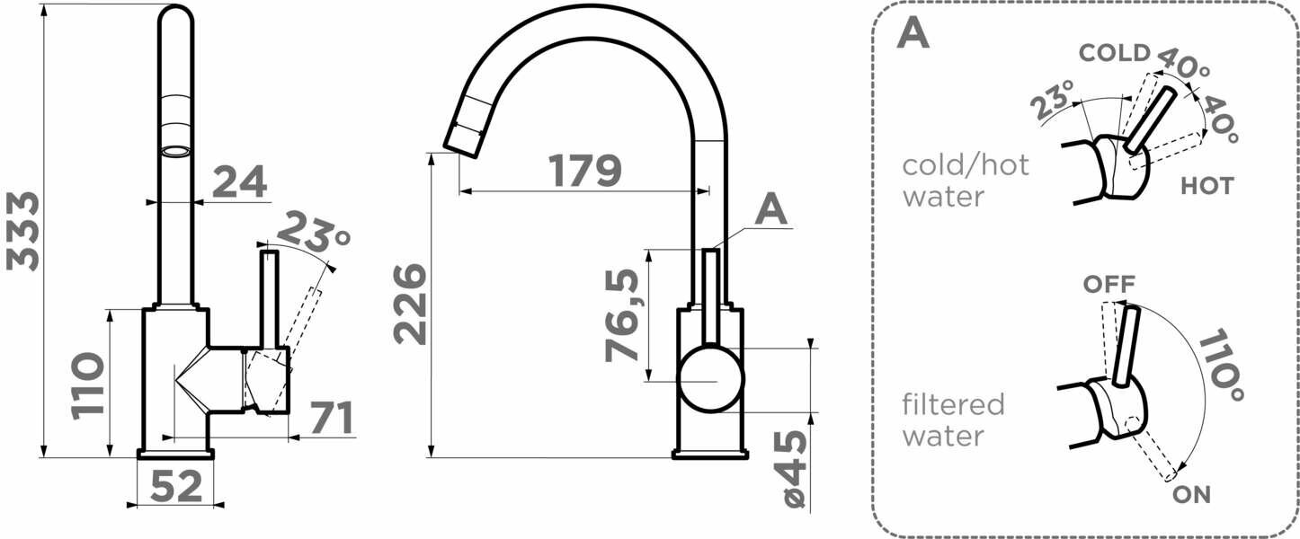 аэратор, поворотный излив, ПоворотныйС фильтром для питьевой водыГибкая подводкаАэратор, подключение фильтра для очистки воды