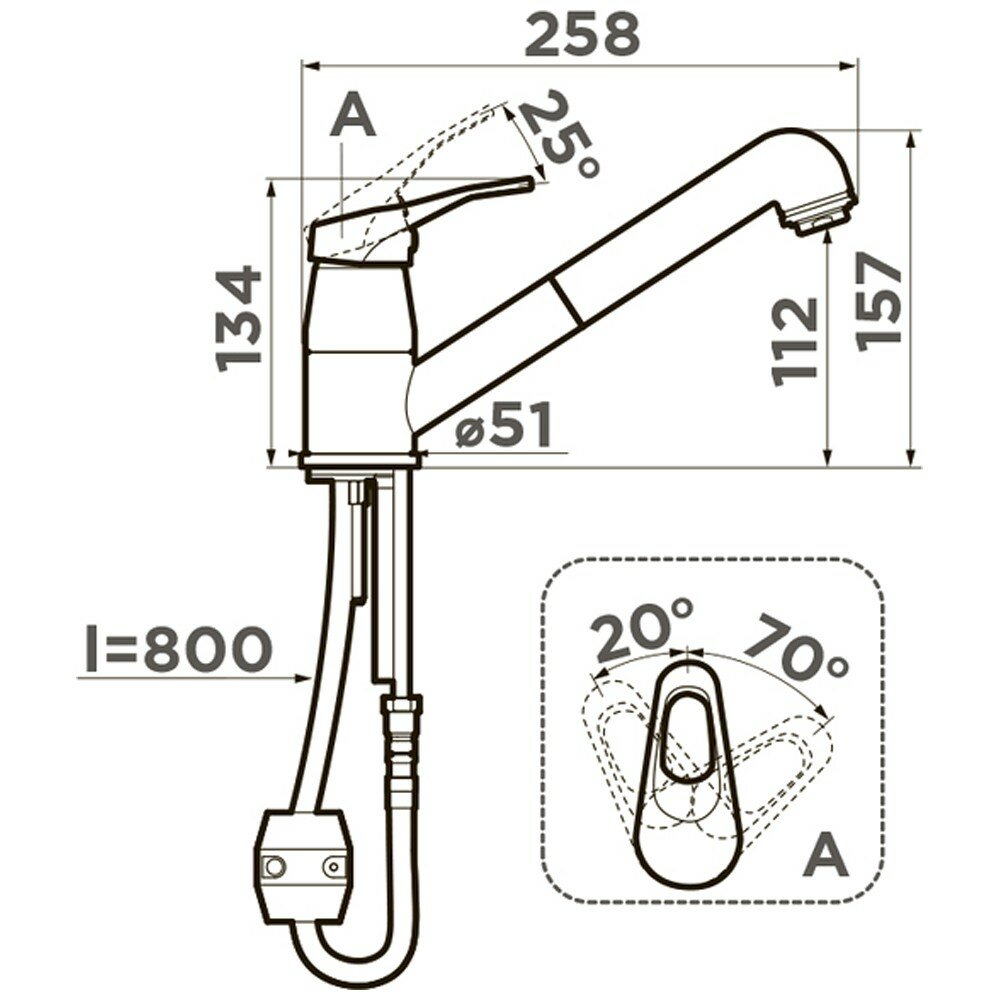 вытяжной шланг длиной до 800 мм