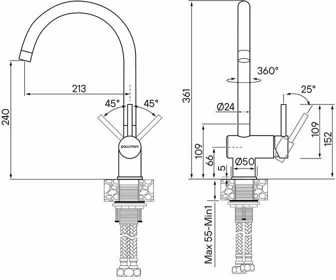 Смеситель для кухни Paulmark Bend Be212066-SS нержавеющая сталь