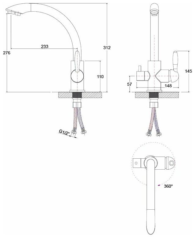 поворотный, Совмещенный излив для питьевой воды