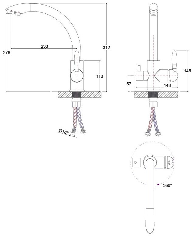 гибкая подводка, крепление для монтажа, переходник цанга 1/2" для подключения к фильтру, индивидуальная сберегающая упаковка с ложементом из поролона