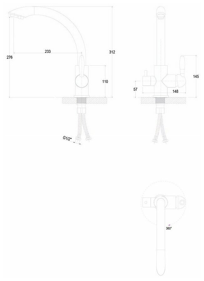 гибкая подводка, крепление для монтажа, переходник цанга 1/2" для подключения к фильтру, индивидуальная сберегающая упаковка с ложементом из поролона