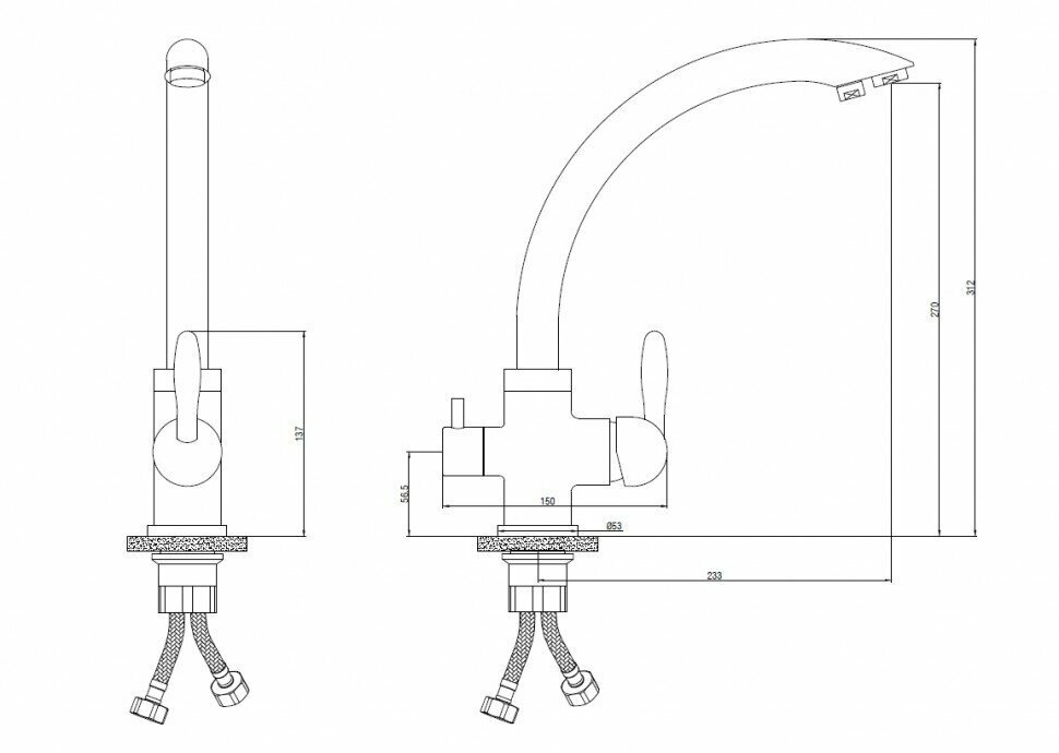 гибкая подводка, крепление для монтажа, переходник цанга 1/2" для подключения к фильтру, индивидуальная сберегающая упаковка с ложементом из поролона