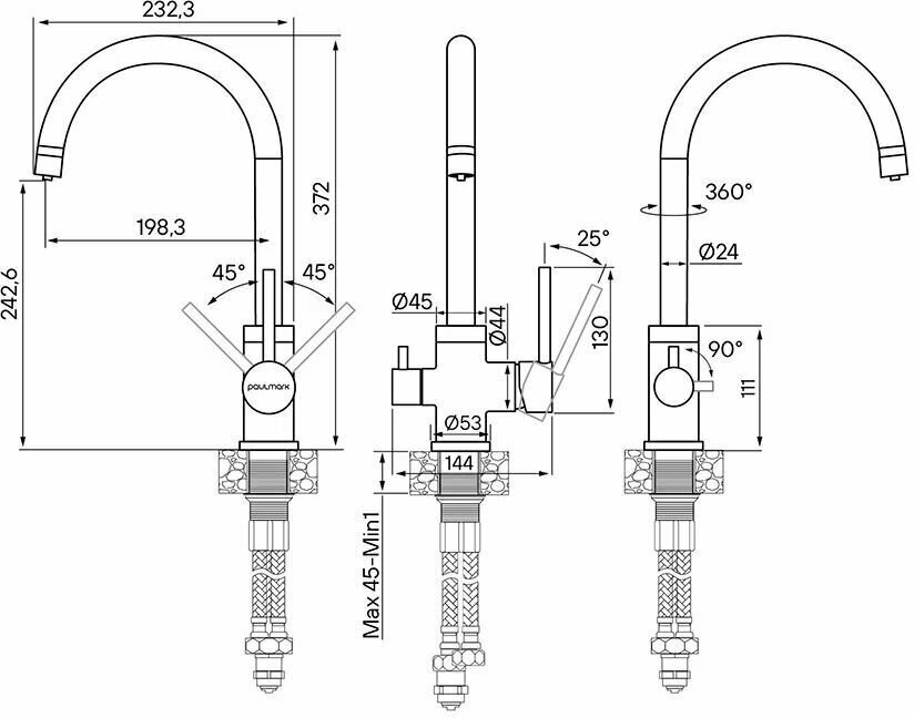 аэратор, Гибкая подводка, Двойная оплетка