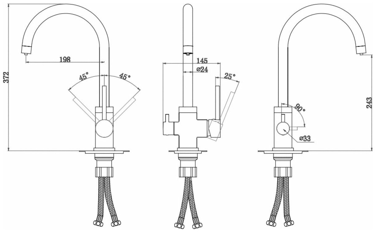аэратор, Гибкая подводка, Поворотный