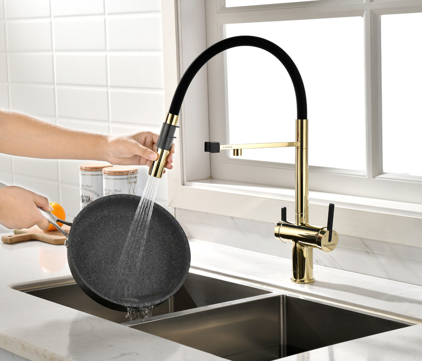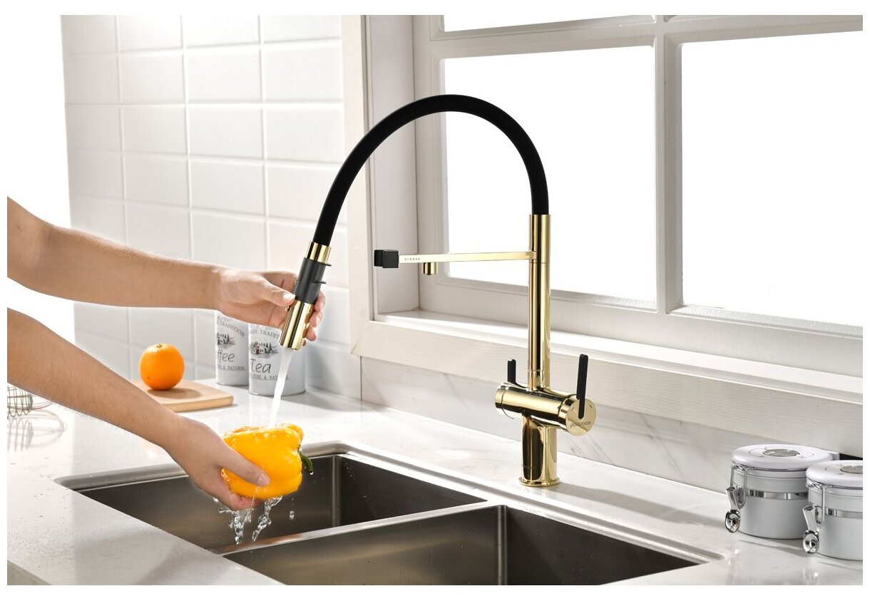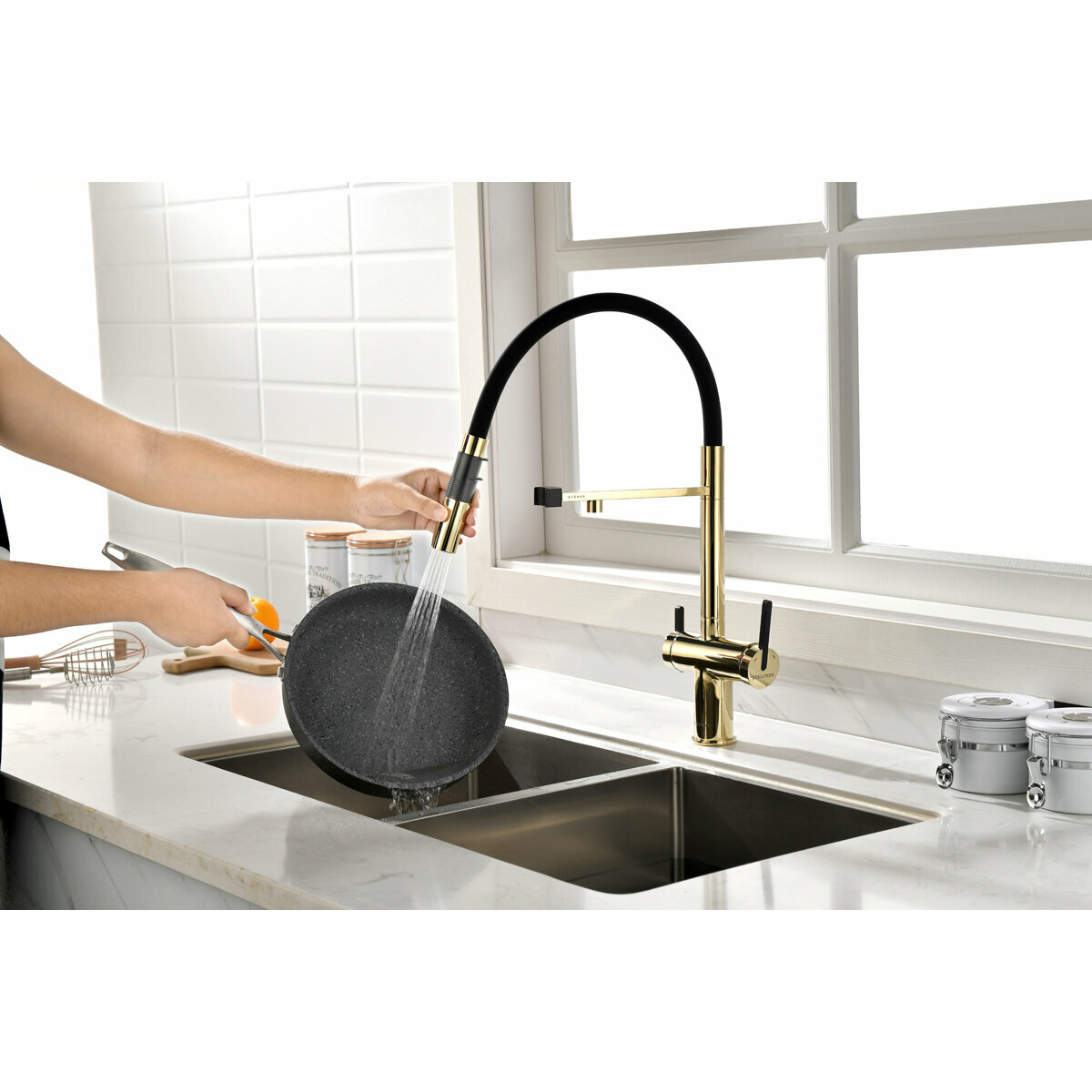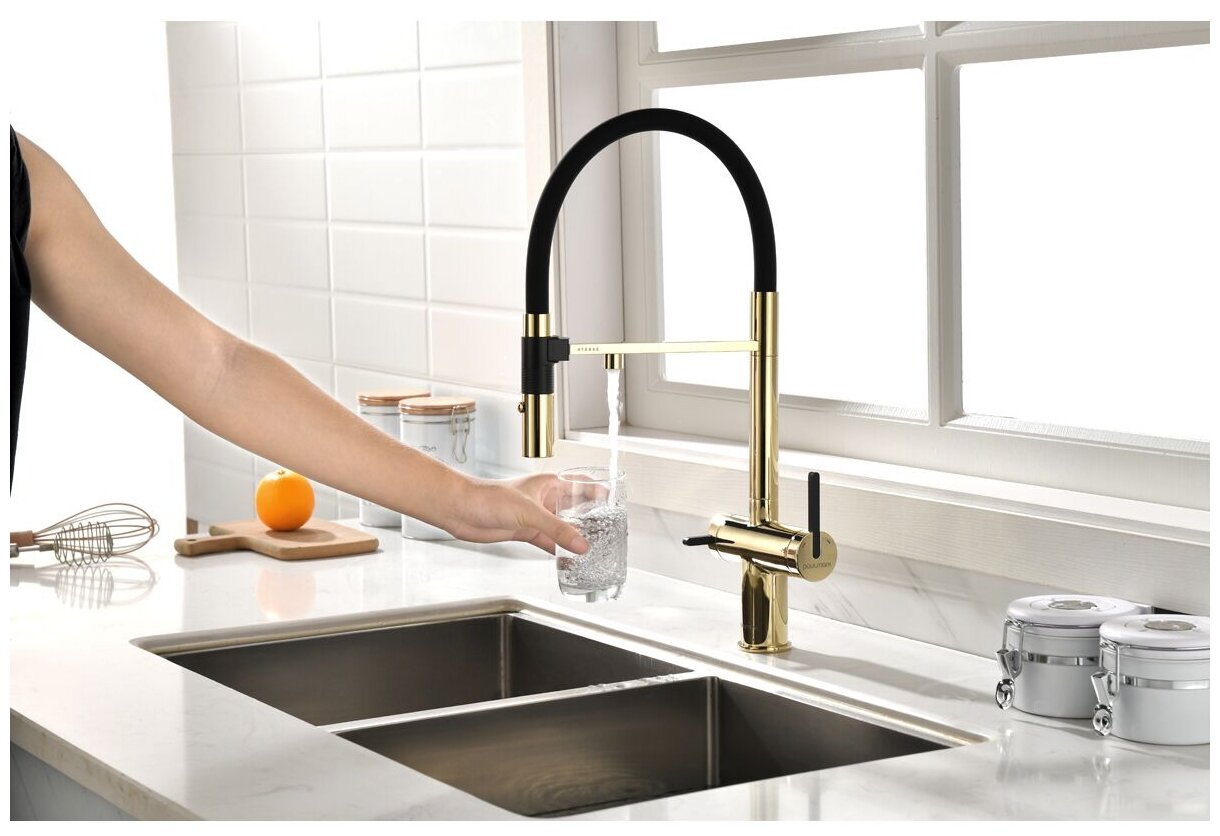 гибкий, для фильтрованной воды, поворотный, Длинный, Дополнительный излив для питьевой воды, Монолитный, С режимом "душ"
