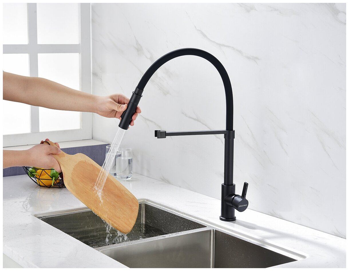 гибкий, поворотный, С режимом "душ", Совмещенный излив для питьевой воды