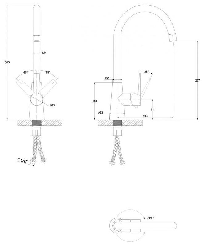 гайки G1/2'';комплект крепления;гибкая подводка для воды 40 см