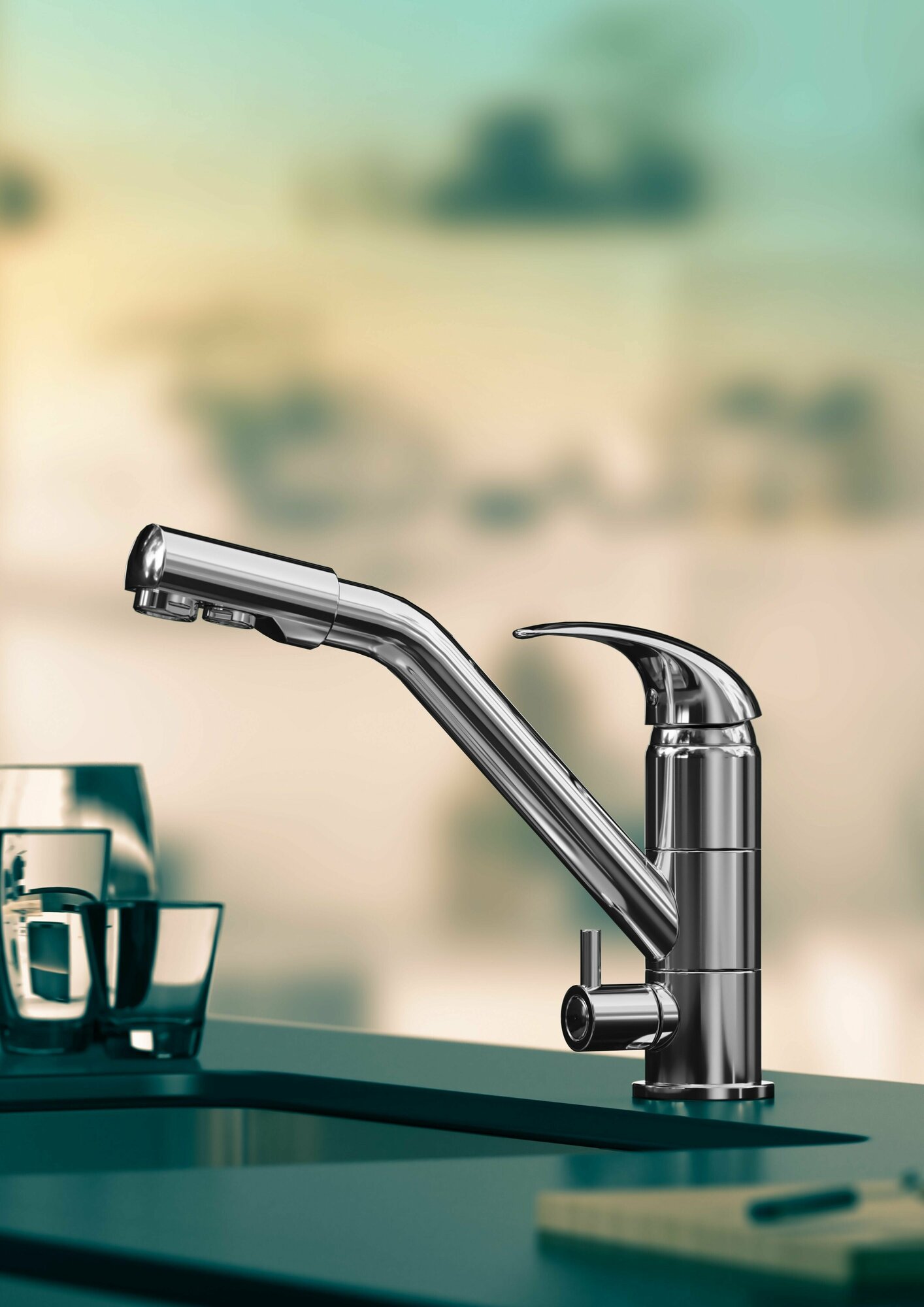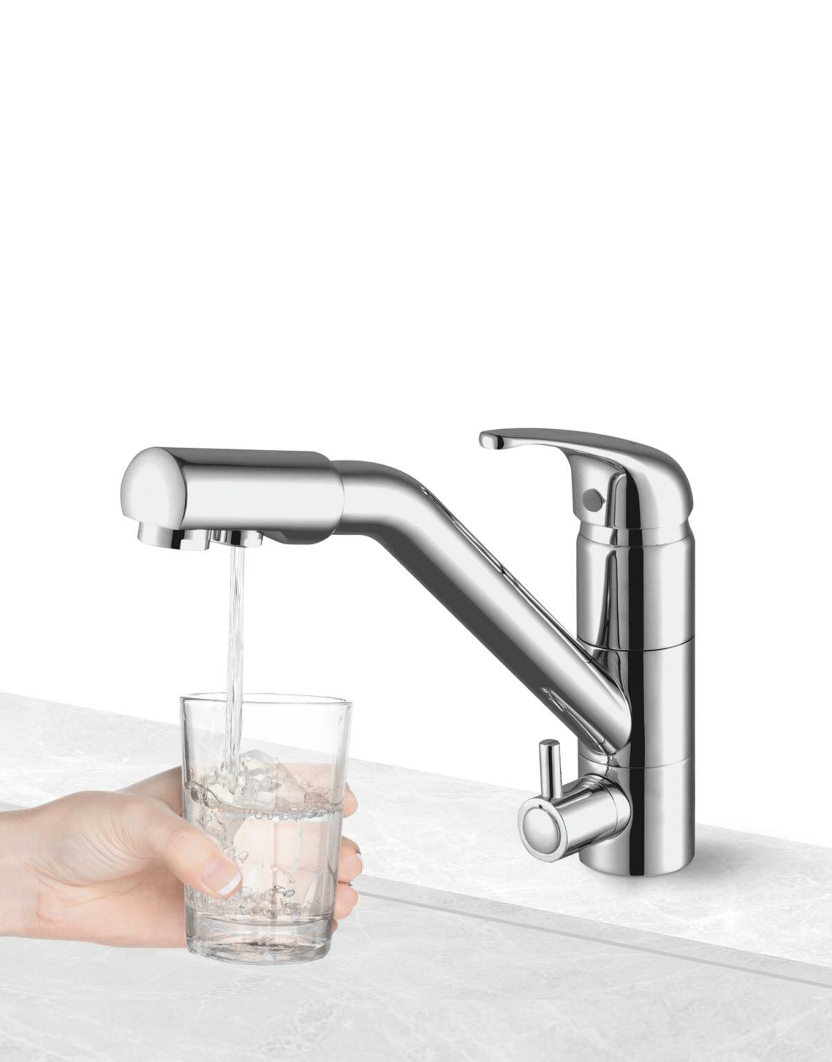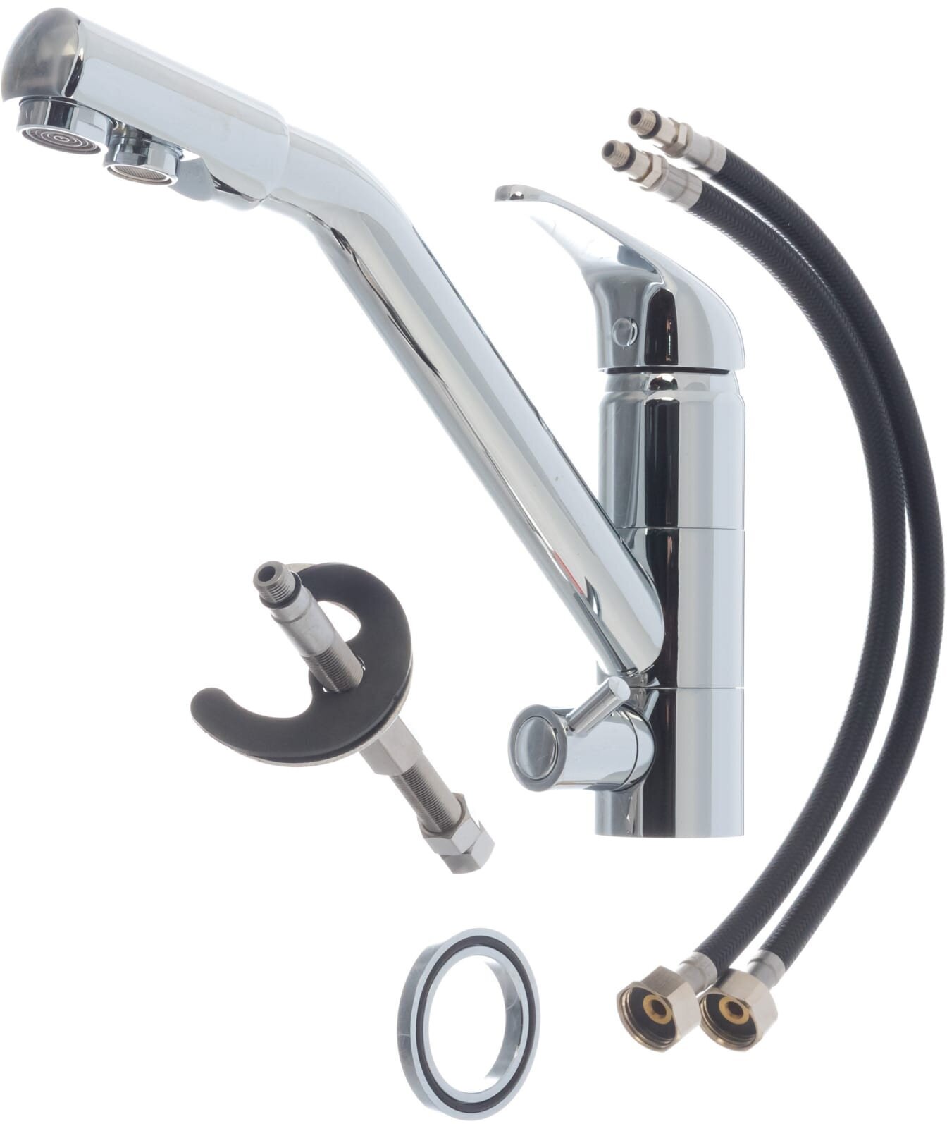 гибкая подводка, крепление для монтажа, переходник цанга 1/2" для подключения к фильтру, индивидуальная сберегающая упаковка с ложементом из поролона