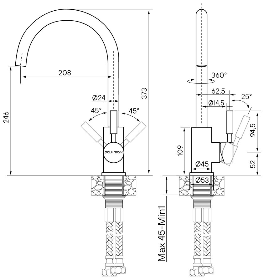 Смеситель для кухни Paulmark Holstein Ho212063-308 черный
