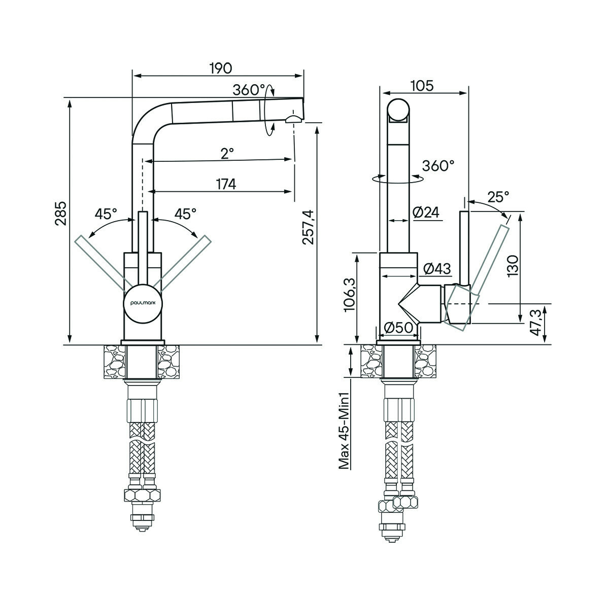 Гибкая подводка 40 см из нержавеющей стали гайки G1/2", усиленный комплект крепления, выход для подключения системы фильтрации воды. переходник цанга 1/2" для подключения фильтра.