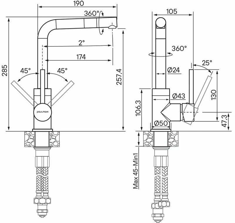 гибкая подводка, крепление для монтажа, индивидуальная сберегающая упаковка с ложементом из поролона