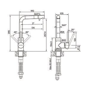 Гибкая подводка 40 см из нержавеющей стали гайки G1/2", усиленный комплект крепления, выход для подключения системы фильтрации воды. переходник цанга 1/2" для подключения фильтра.