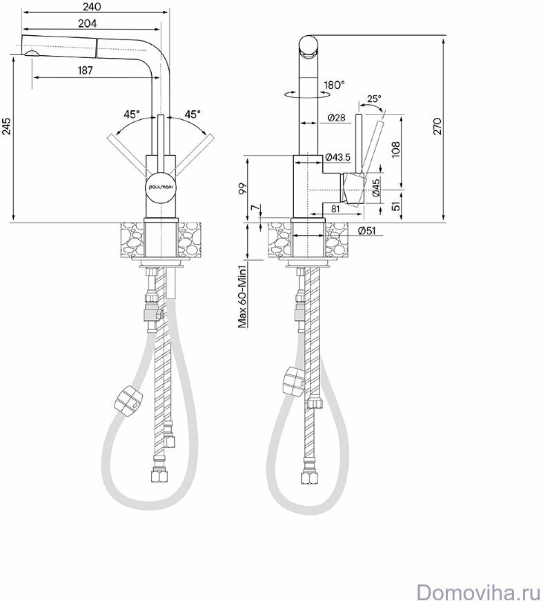 Отзывы о Смеситель для кухни Paulmark Kassel Ka214311-418 черный металлик
