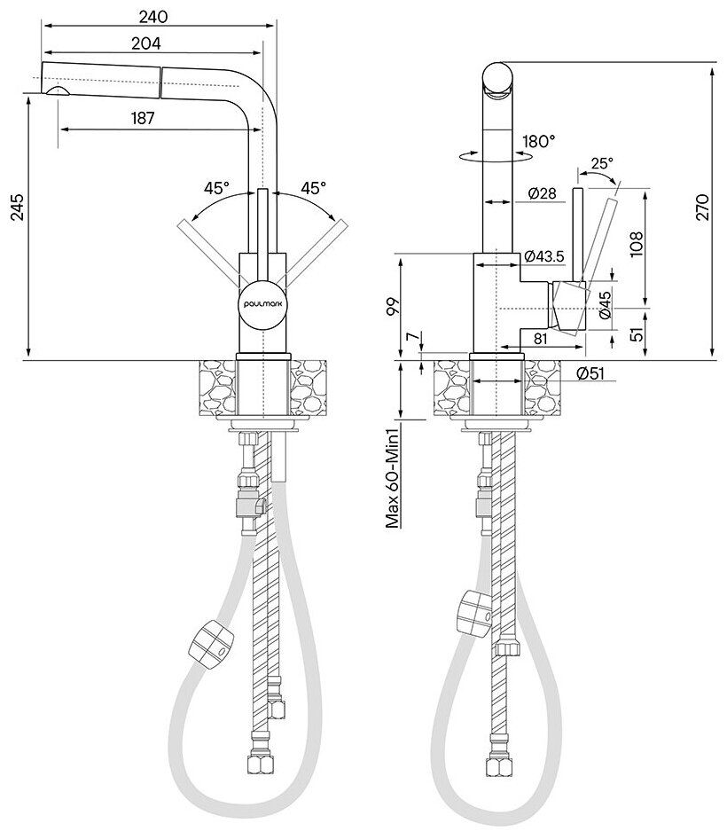 гибкая подводка 40 см из нержавеющей стали, гайки g1/2", усиленный комплект крепления, выход для подключения системы фильтрации воды, переходник цанга 1/2" для подключения фильтра
