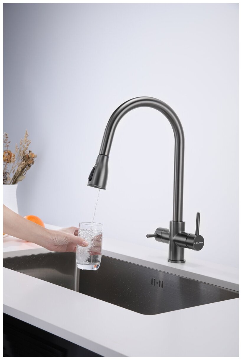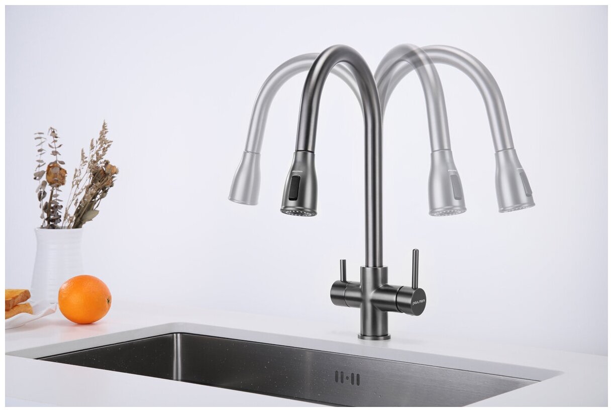 выдвижной, гибкий, поворотный, Совмещенный излив для питьевой воды