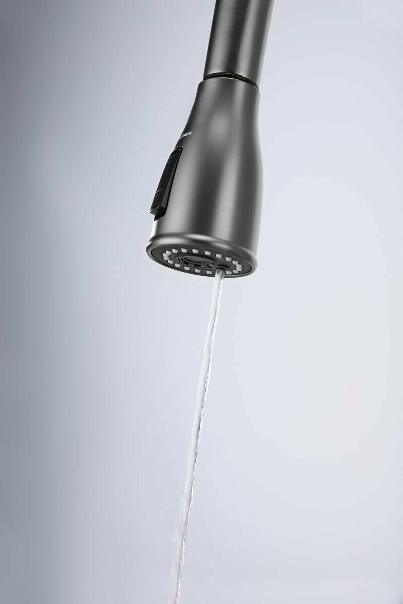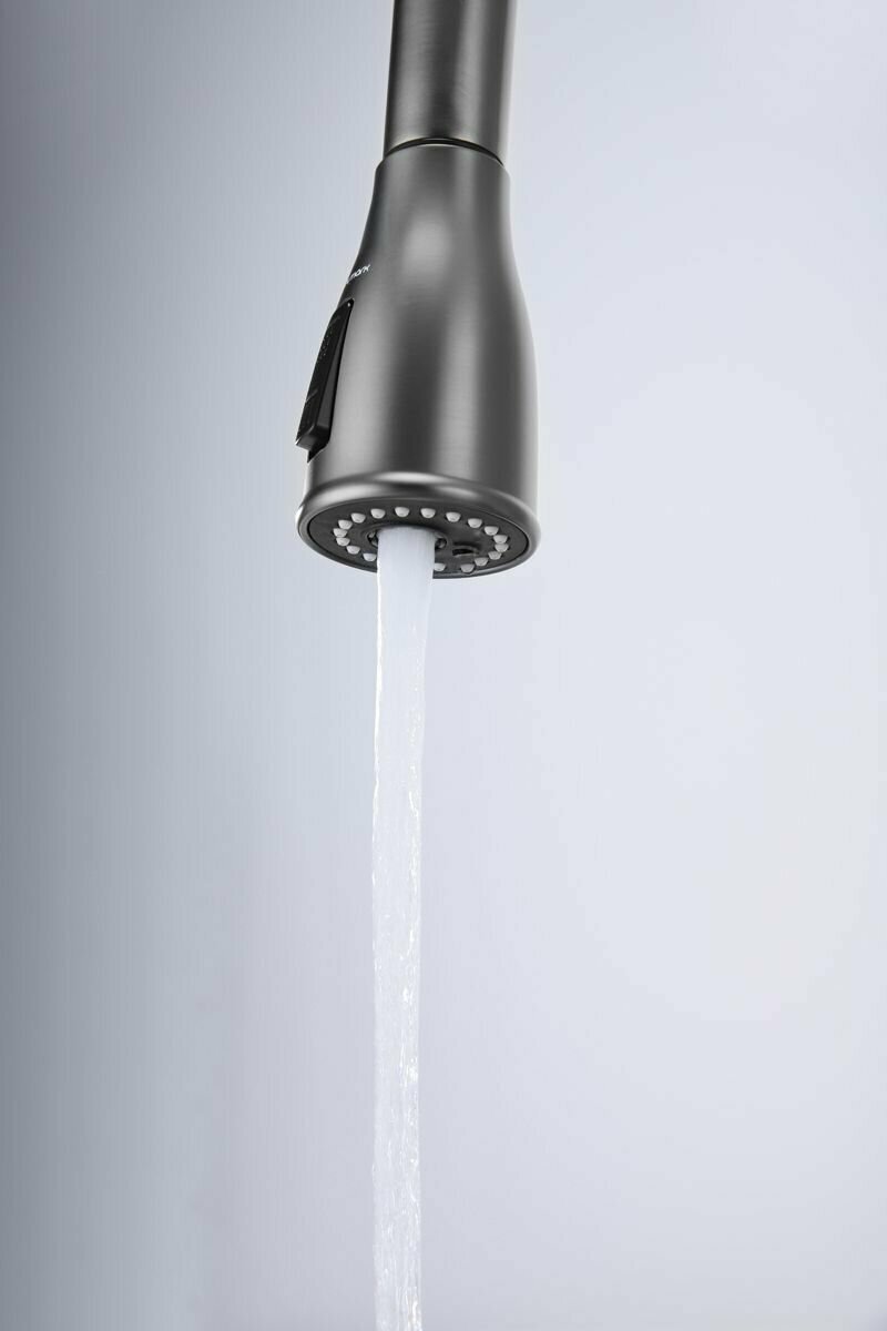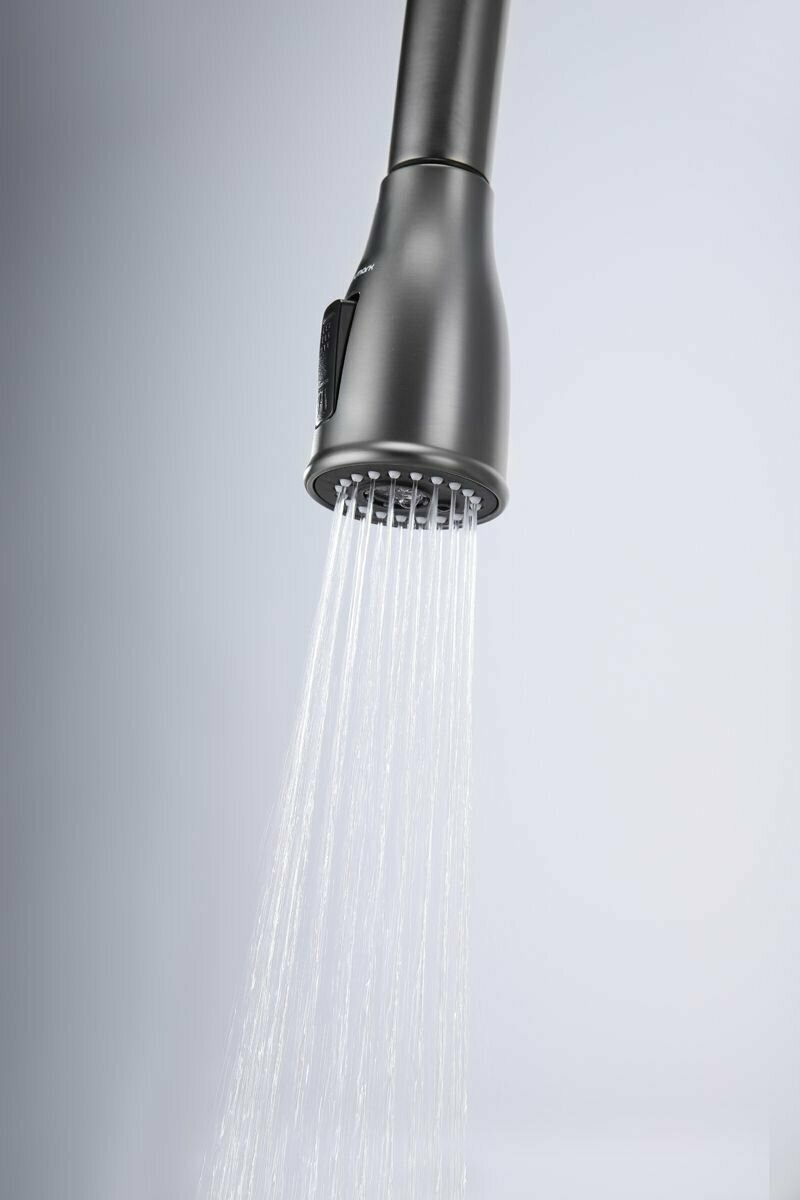 Вытяжной шланг Конструкция смесителя с вытяжным шлангом значительно облегчает процесс мойки посуды или продуктов любого размера и формы. Поворотный излив 180° Увеличивает функциональность. Универсальный дизайн. Прекрасно впишется в любой интерьерный стиль.