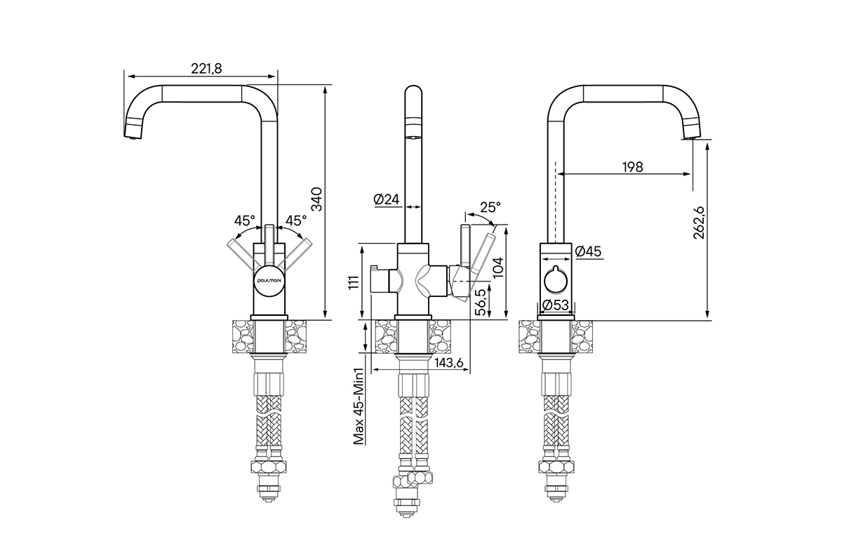 гибкий, для фильтрованной воды, поворотный, Высокий