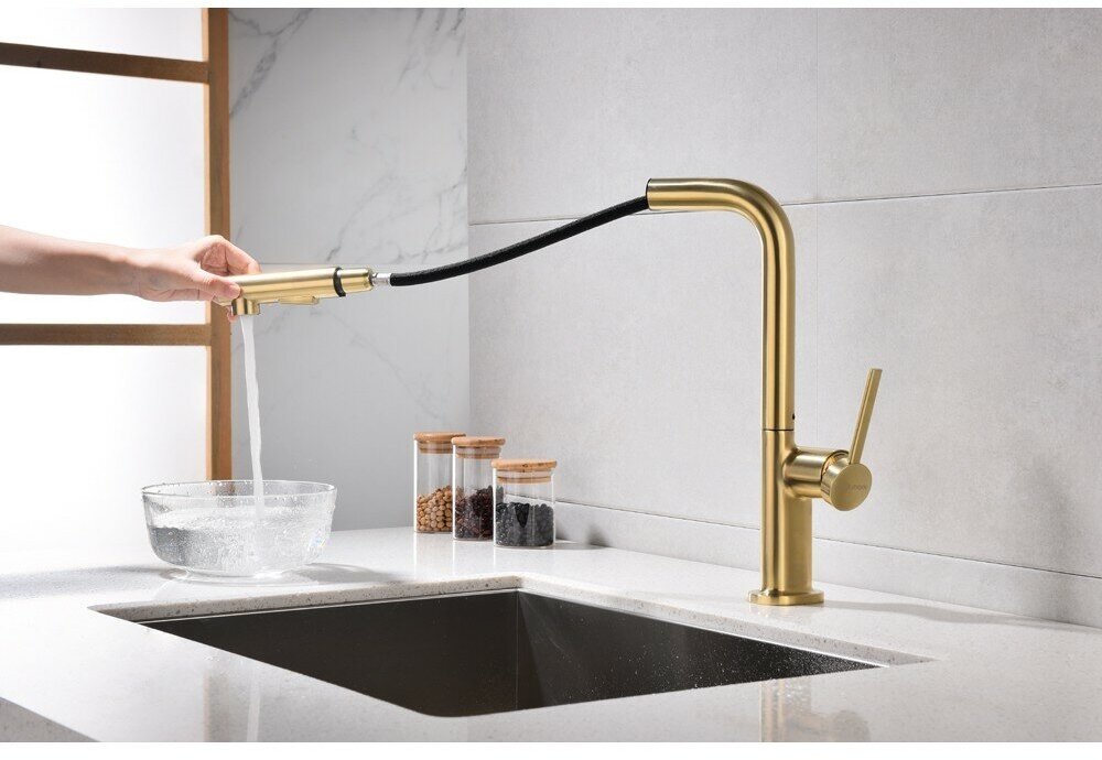 Отзывы о Смеситель для кухни Paulmark Neo Ne214419-BG брашированное золото