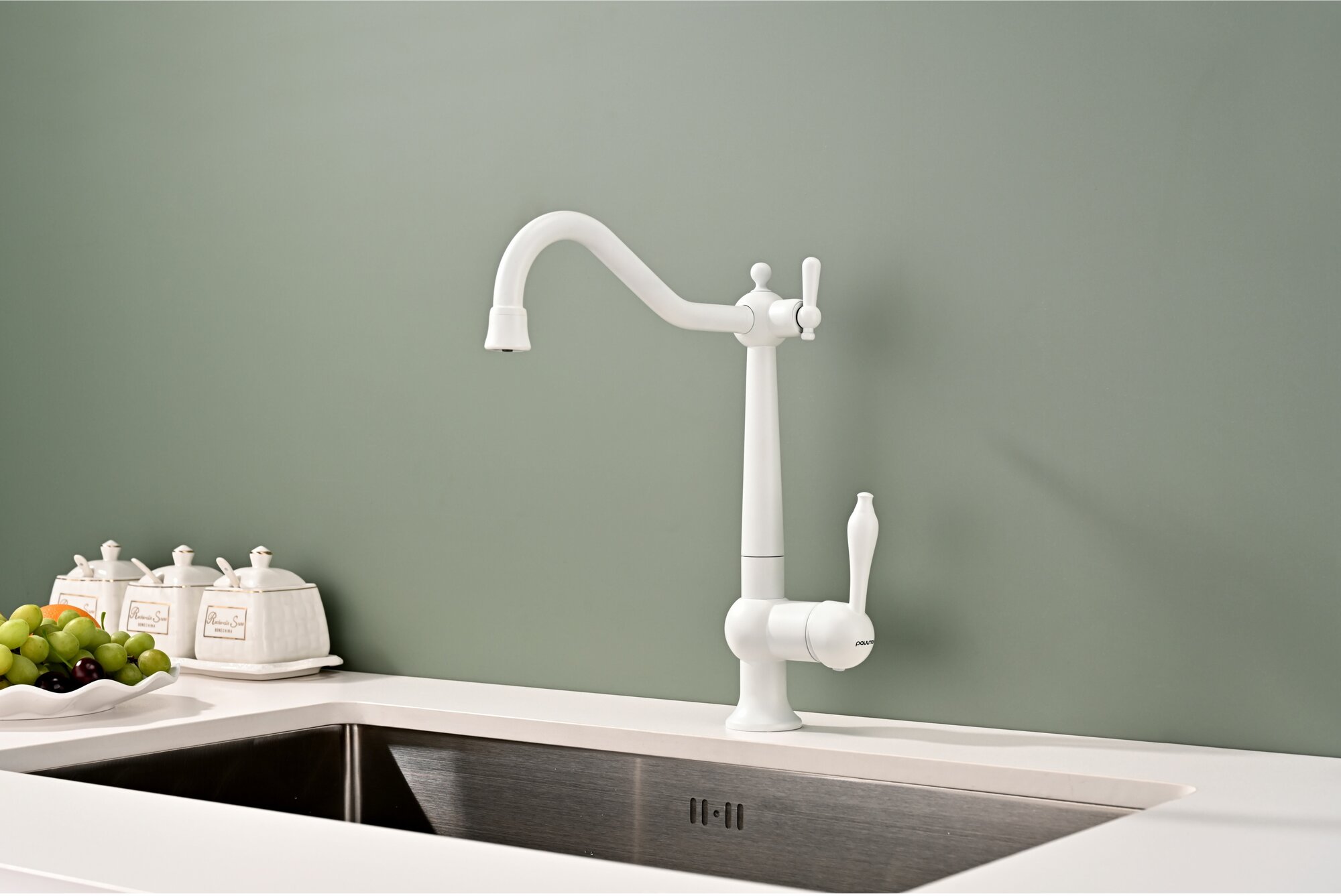 Смеситель для кухни Paulmark Retro Re213226-431 белый матовый