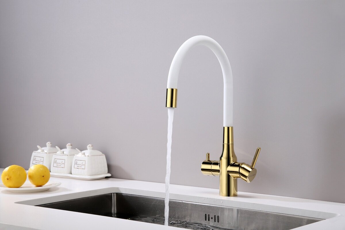 Смеситель для кухни Paulmark Salix золото/белый Sa213419-Gw