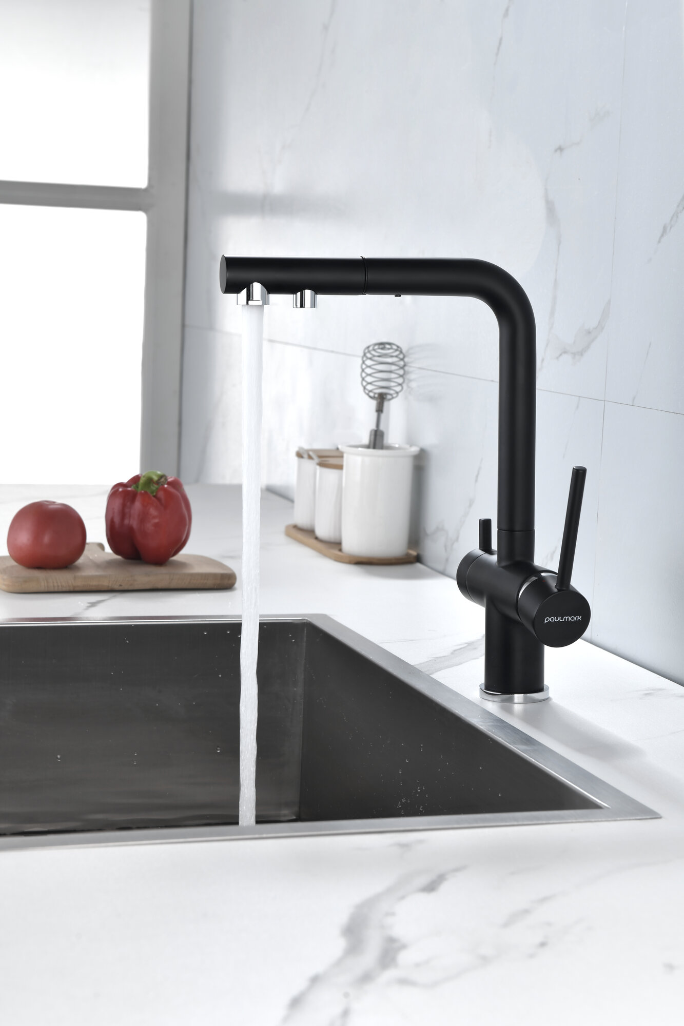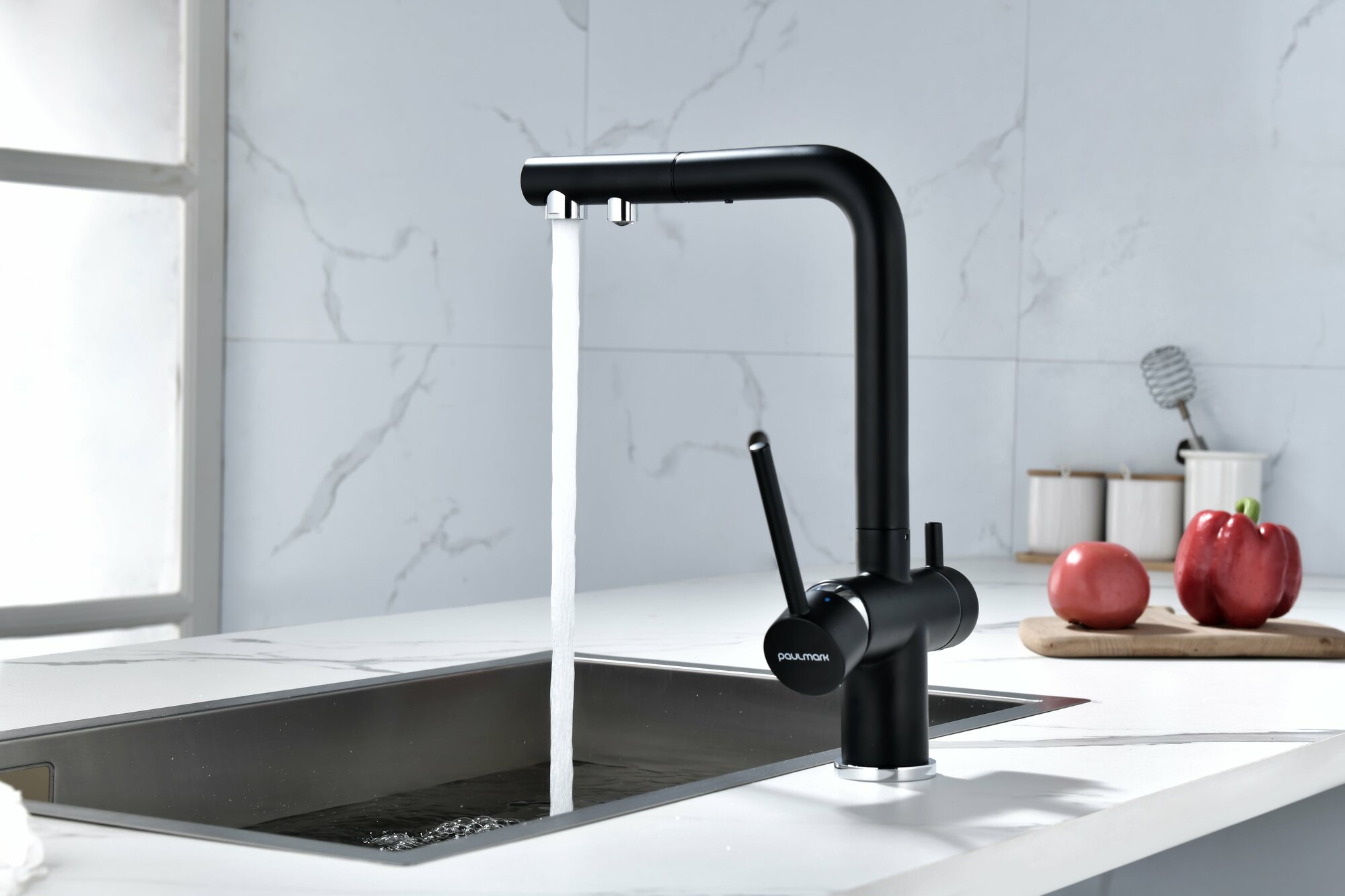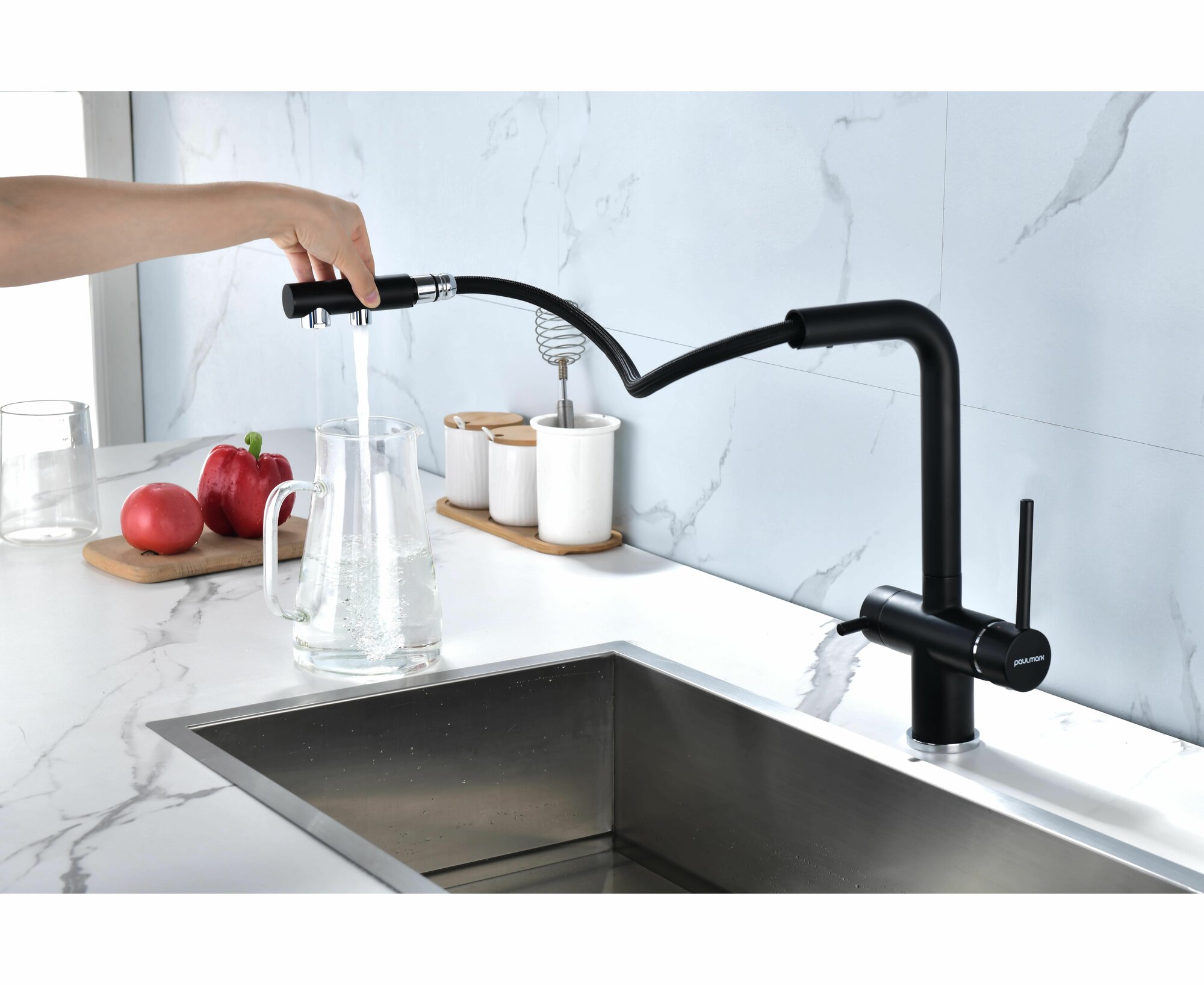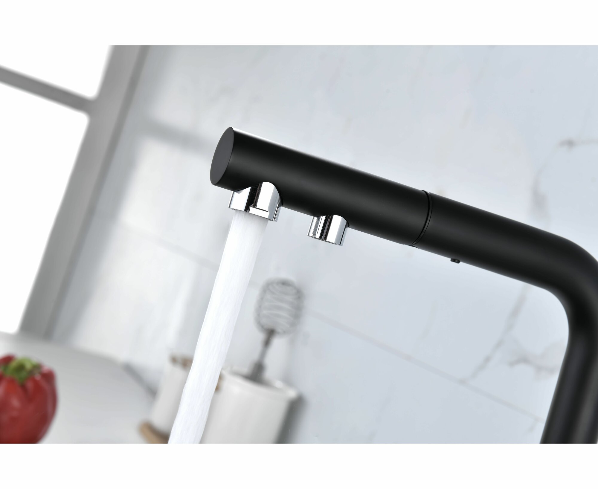 выдвижной, гибкий, поворотный, Дополнительный излив для питьевой воды, С режимом "душ", Совмещенный излив для питьевой воды