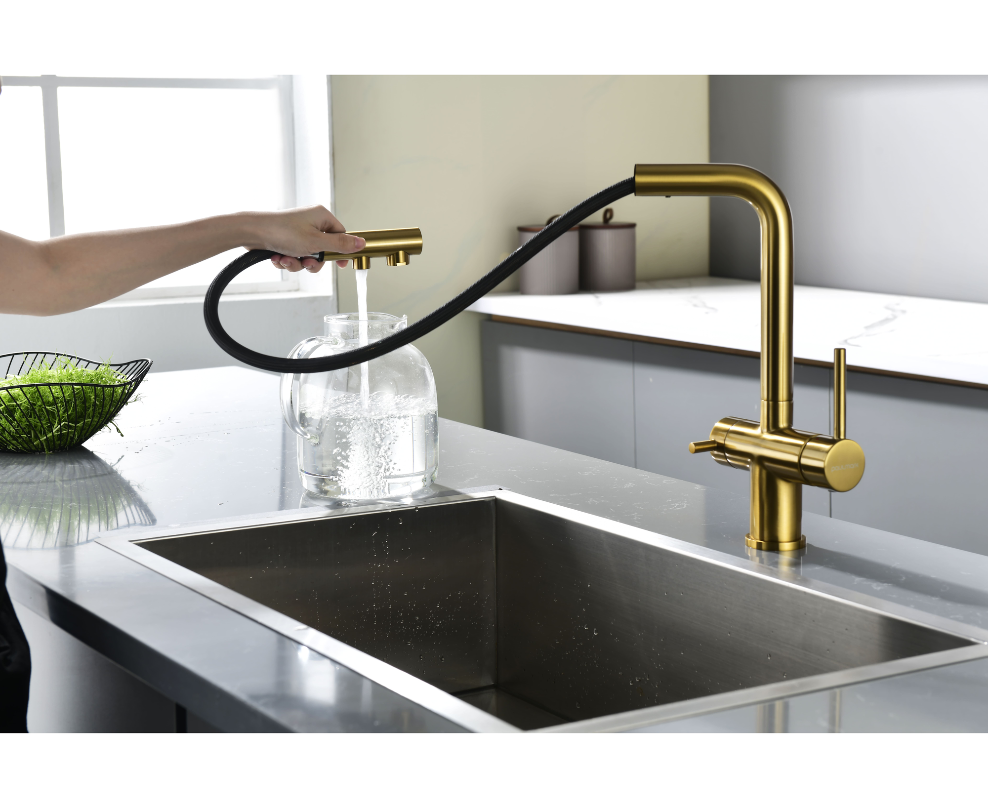 Отзывы о Смеситель для кухни Paulmark Serpentine Se213222-BG брашированное золото