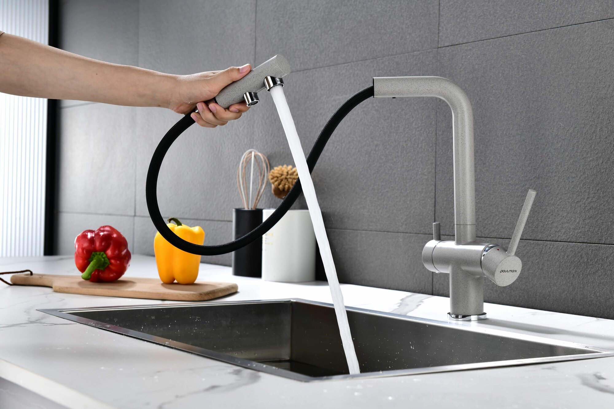 выдвижной, гибкий, поворотный, Дополнительный излив для питьевой воды, С режимом "душ", Совмещенный излив для питьевой воды