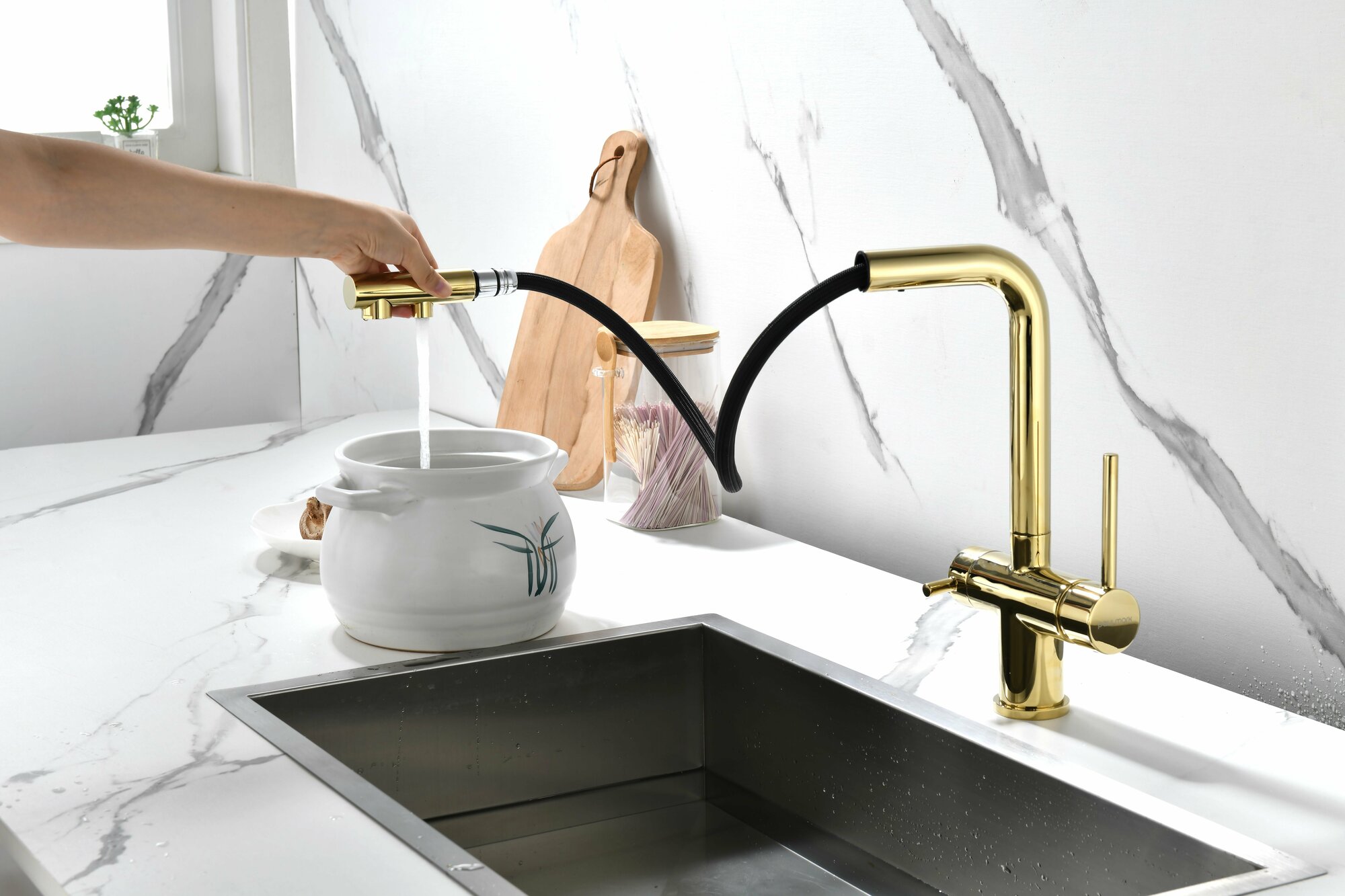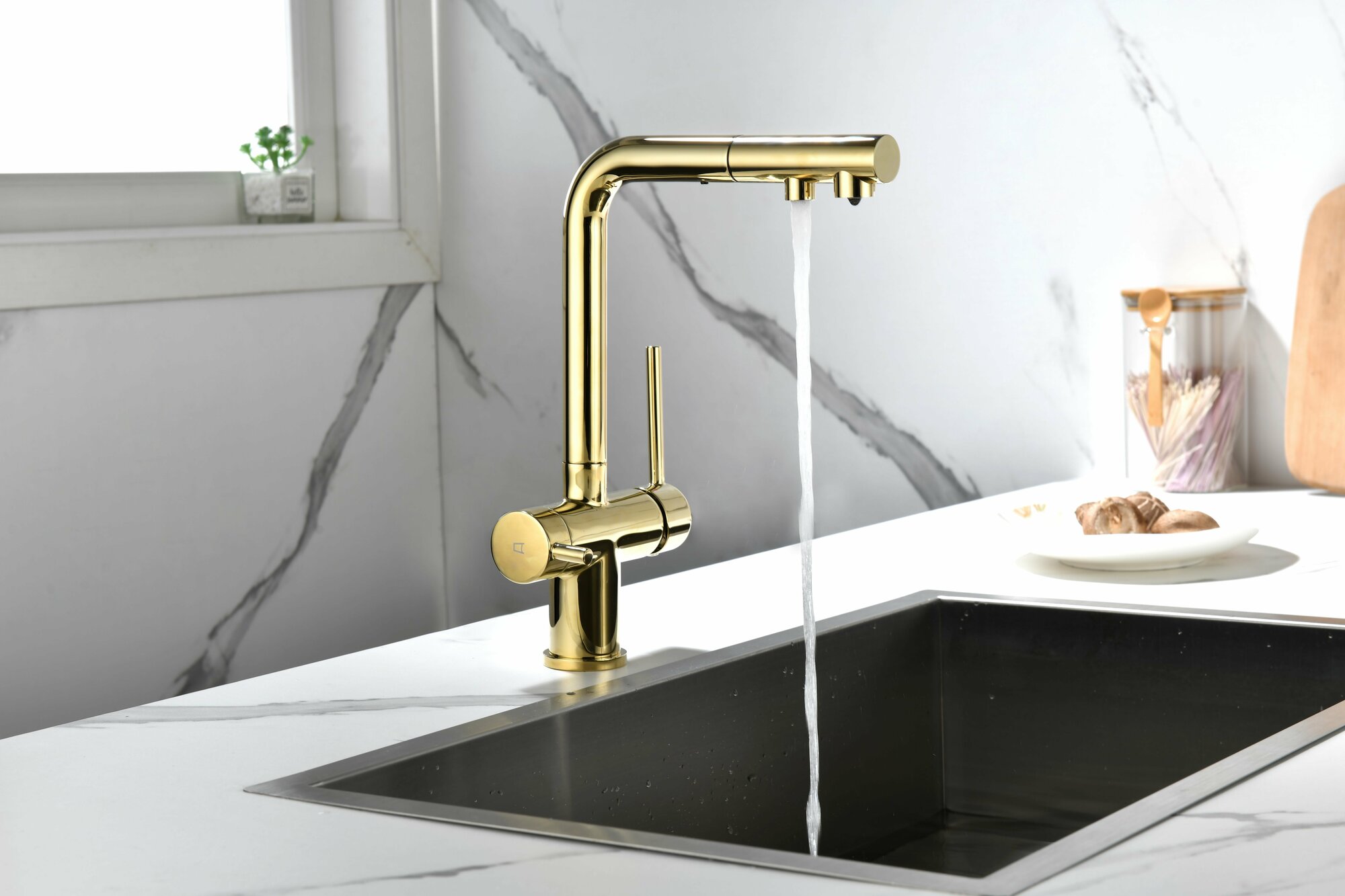 выдвижной, гибкий, поворотный, Дополнительный излив для питьевой воды, С режимом "душ", Совмещенный излив для питьевой воды