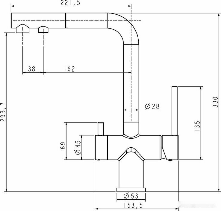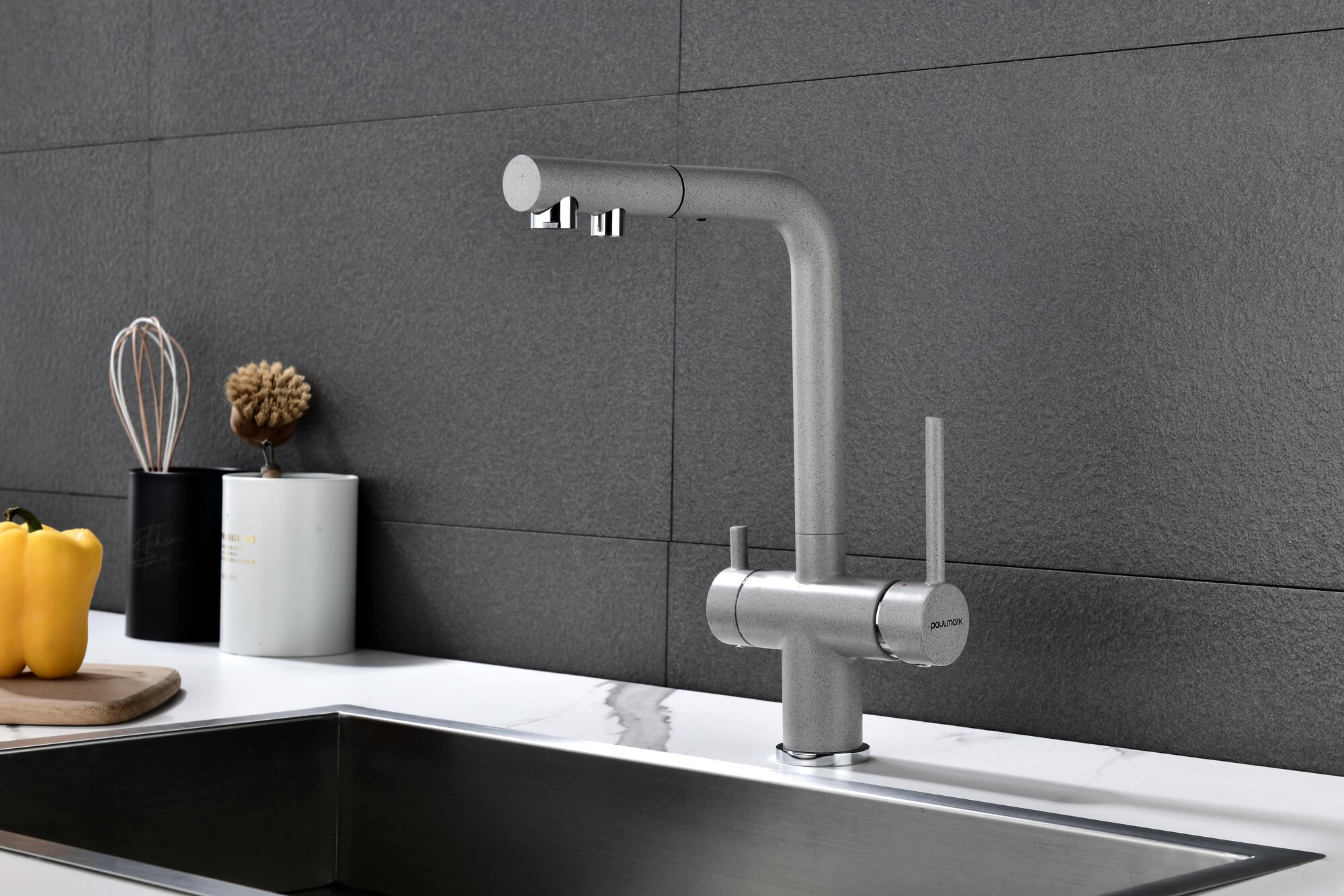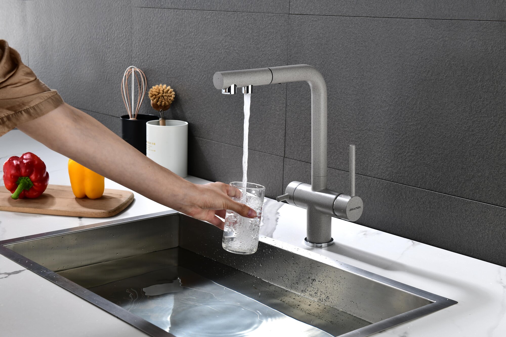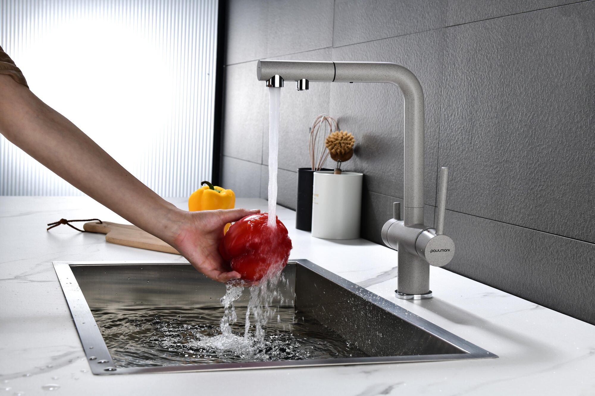 выдвижной, гибкий, поворотный, Дополнительный излив для питьевой воды, С режимом "душ", Совмещенный излив для питьевой воды