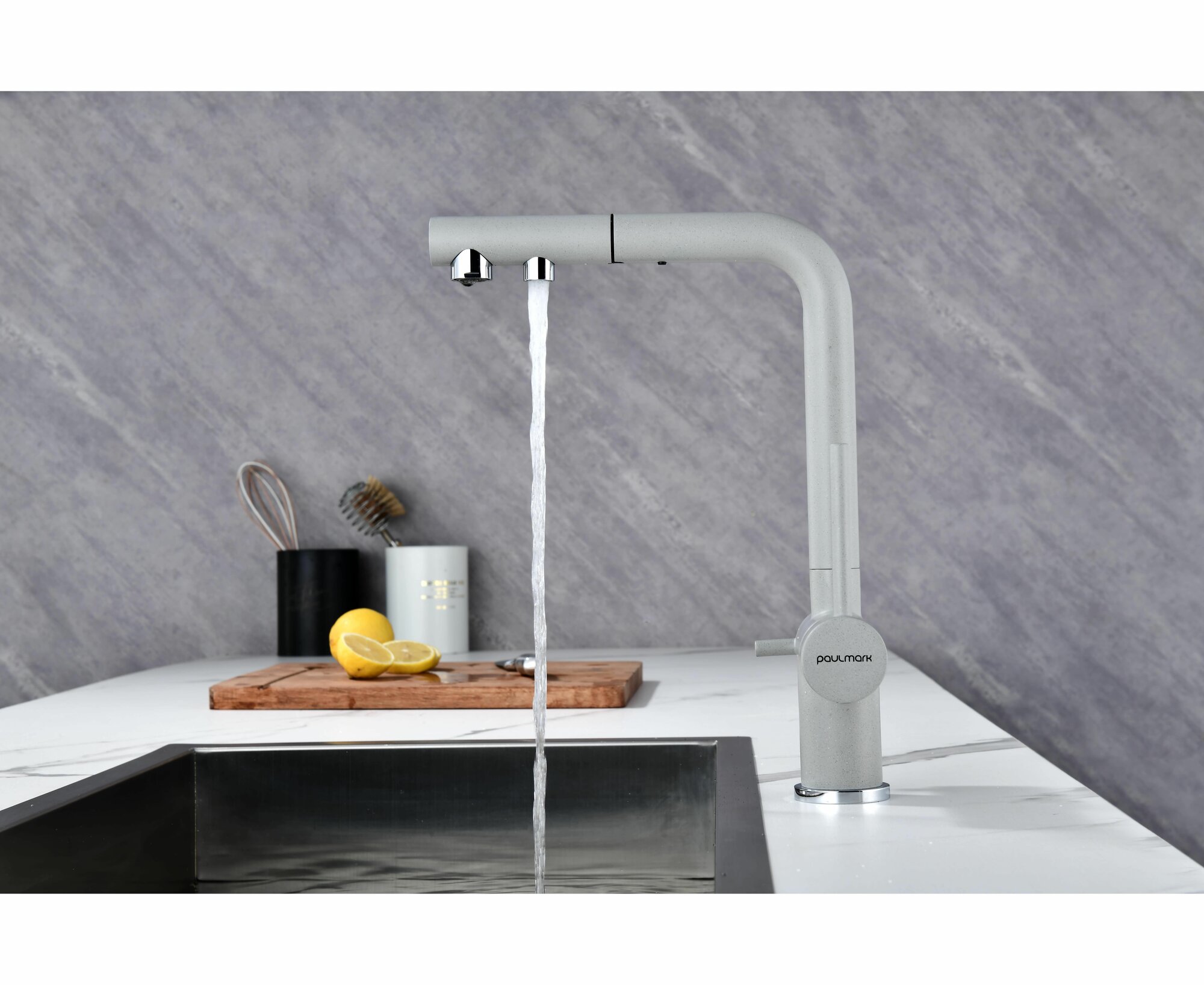 Смеситель для кухни Paulmark Serpentine Se213222-GRS серый дым
