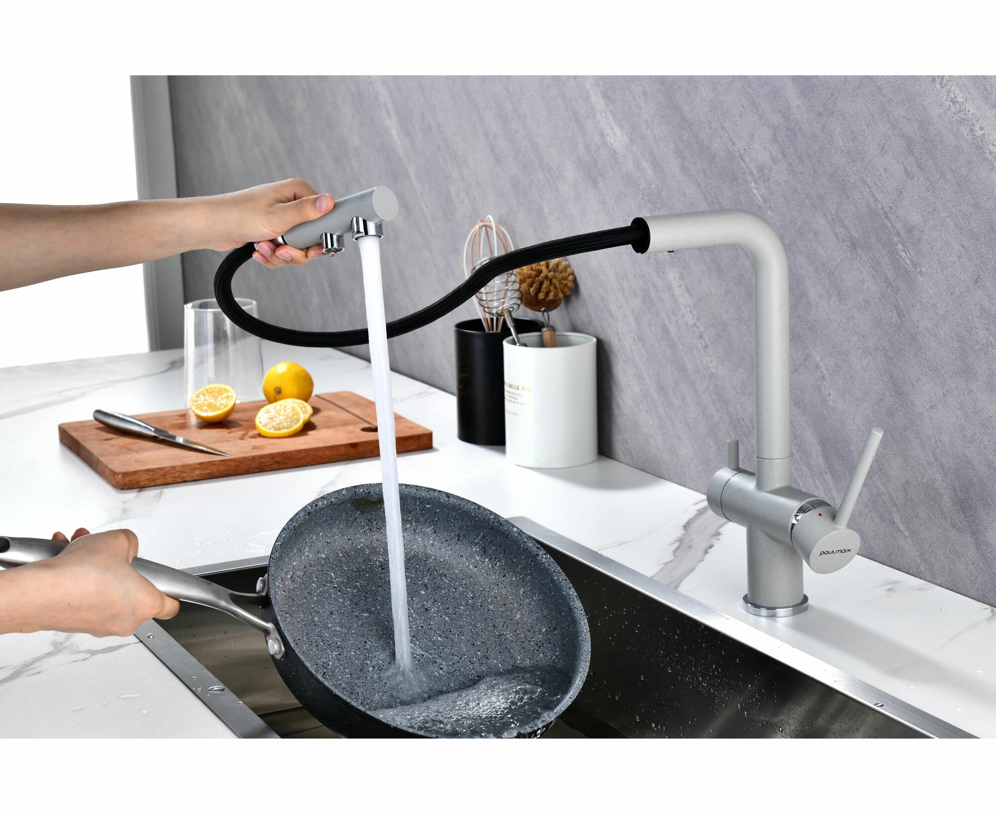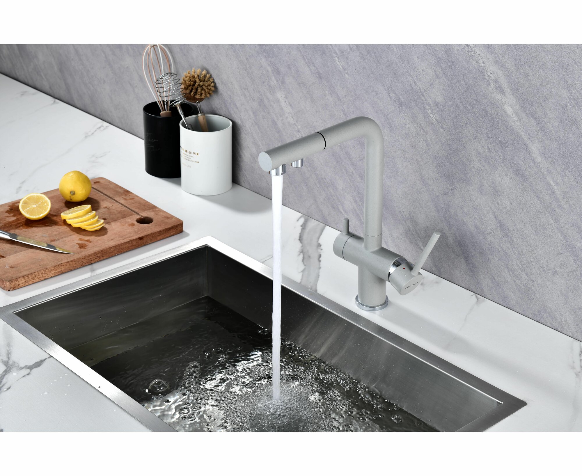 выдвижной, гибкий, поворотный, Дополнительный излив для питьевой воды, С режимом "душ", Совмещенный излив для питьевой воды