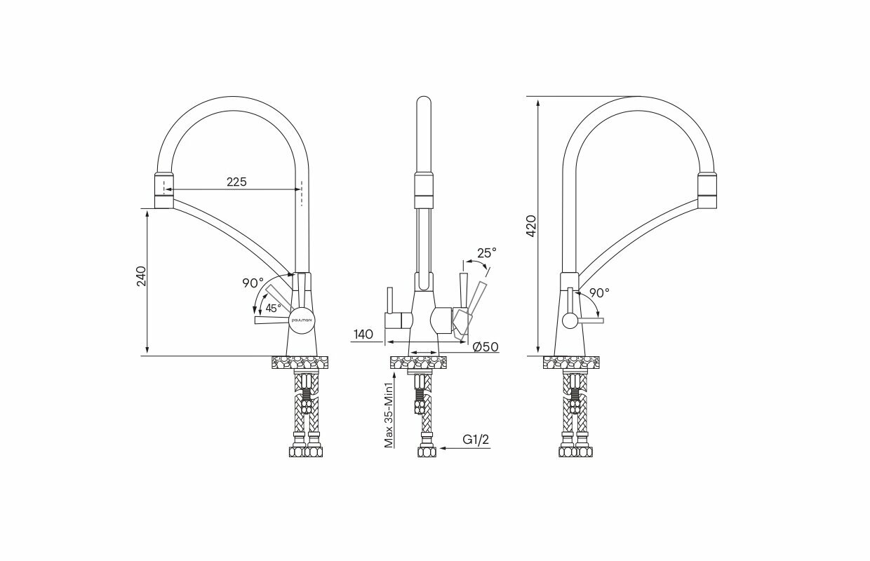 гибкий, поворотный, Совмещенный излив для питьевой воды