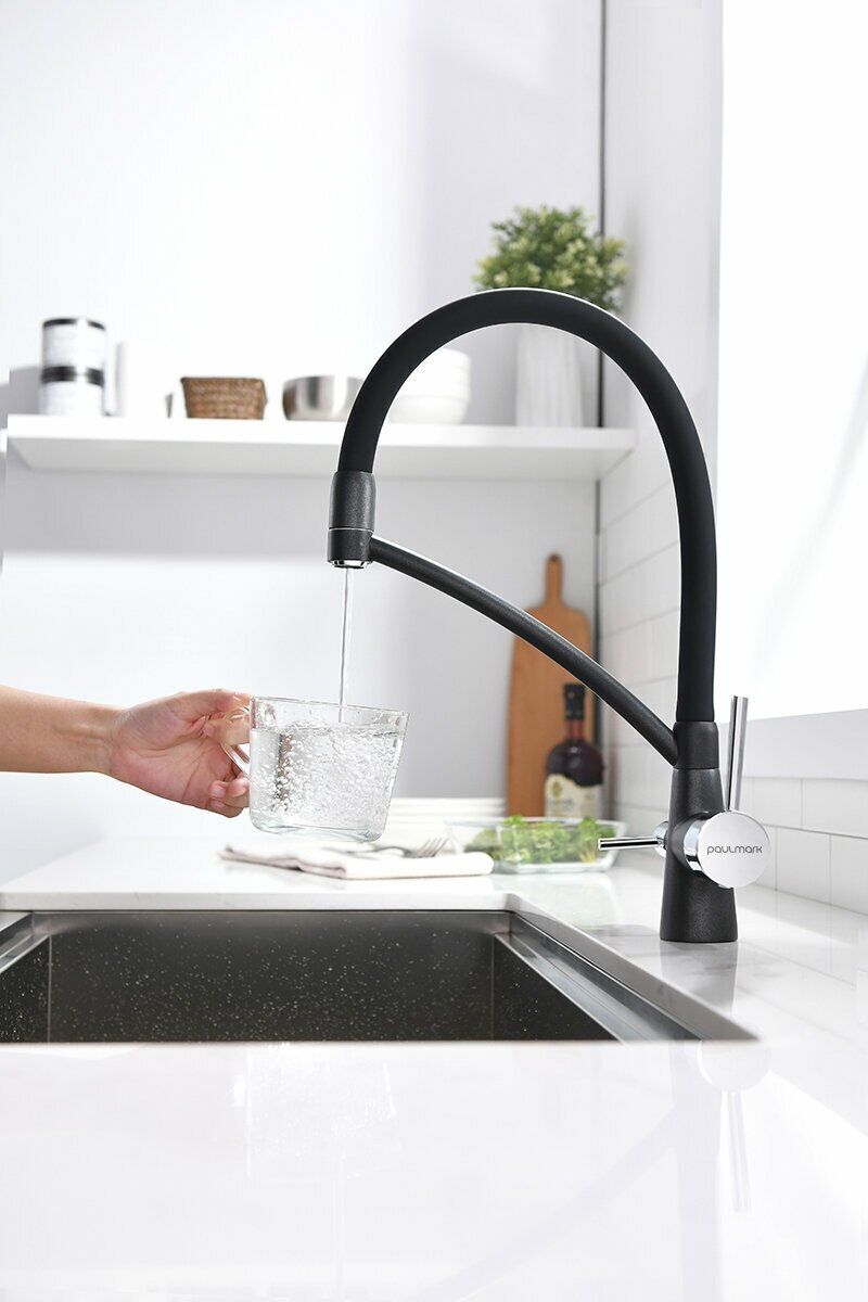 Отзывы о Смеситель для кухни Paulmark Siеgen Si213111-418 черный металлик