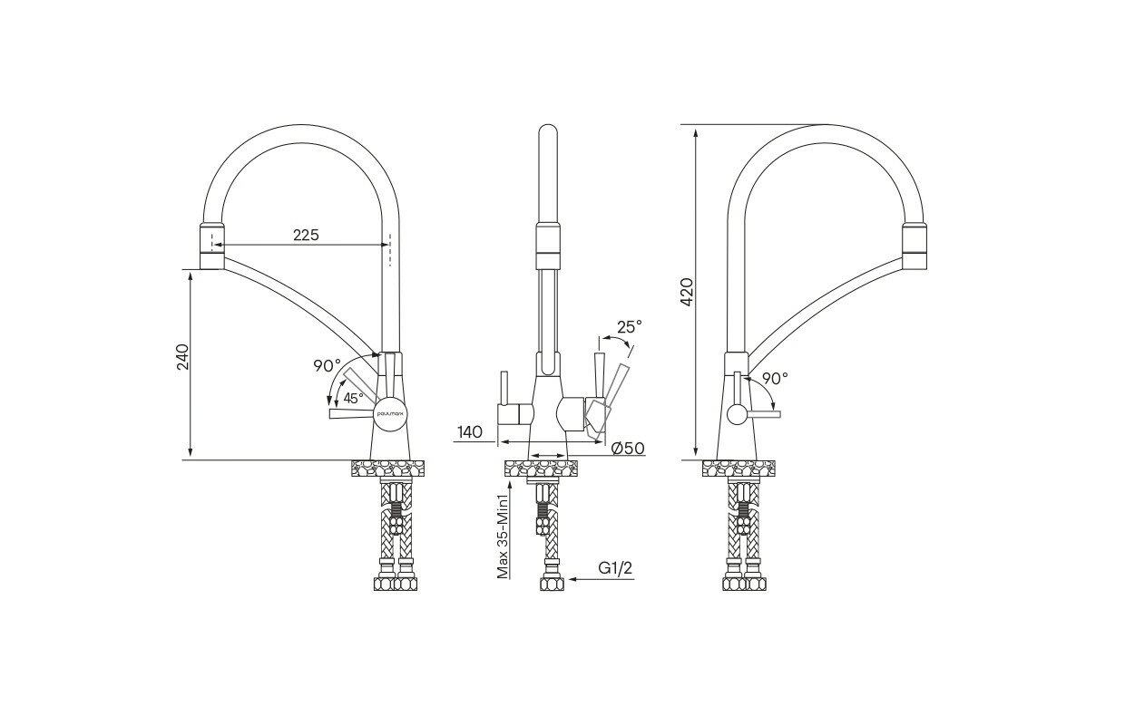 гибкий, поворотный, Совмещенный излив для питьевой воды