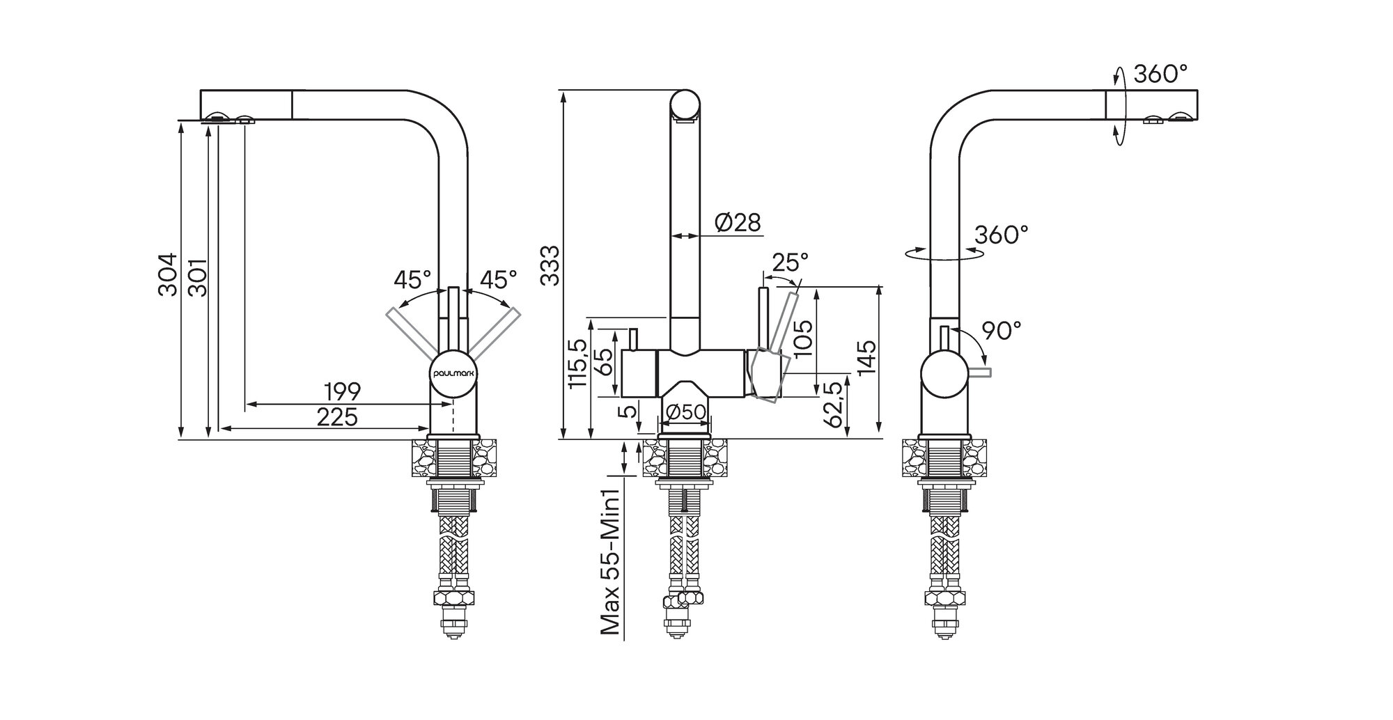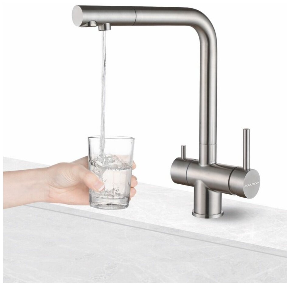 аэратор, Гибкая подводка, Двойная оплетка, Поворотный, С краном для питьевой воды