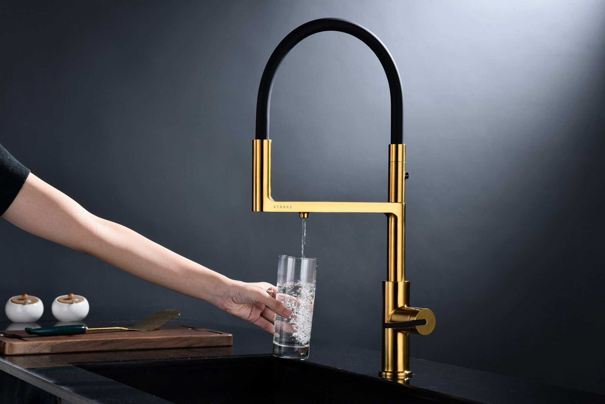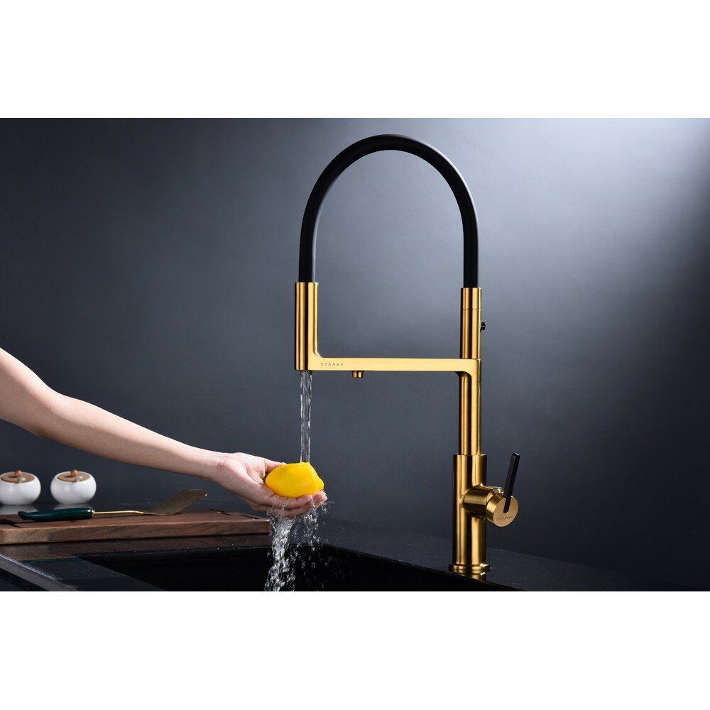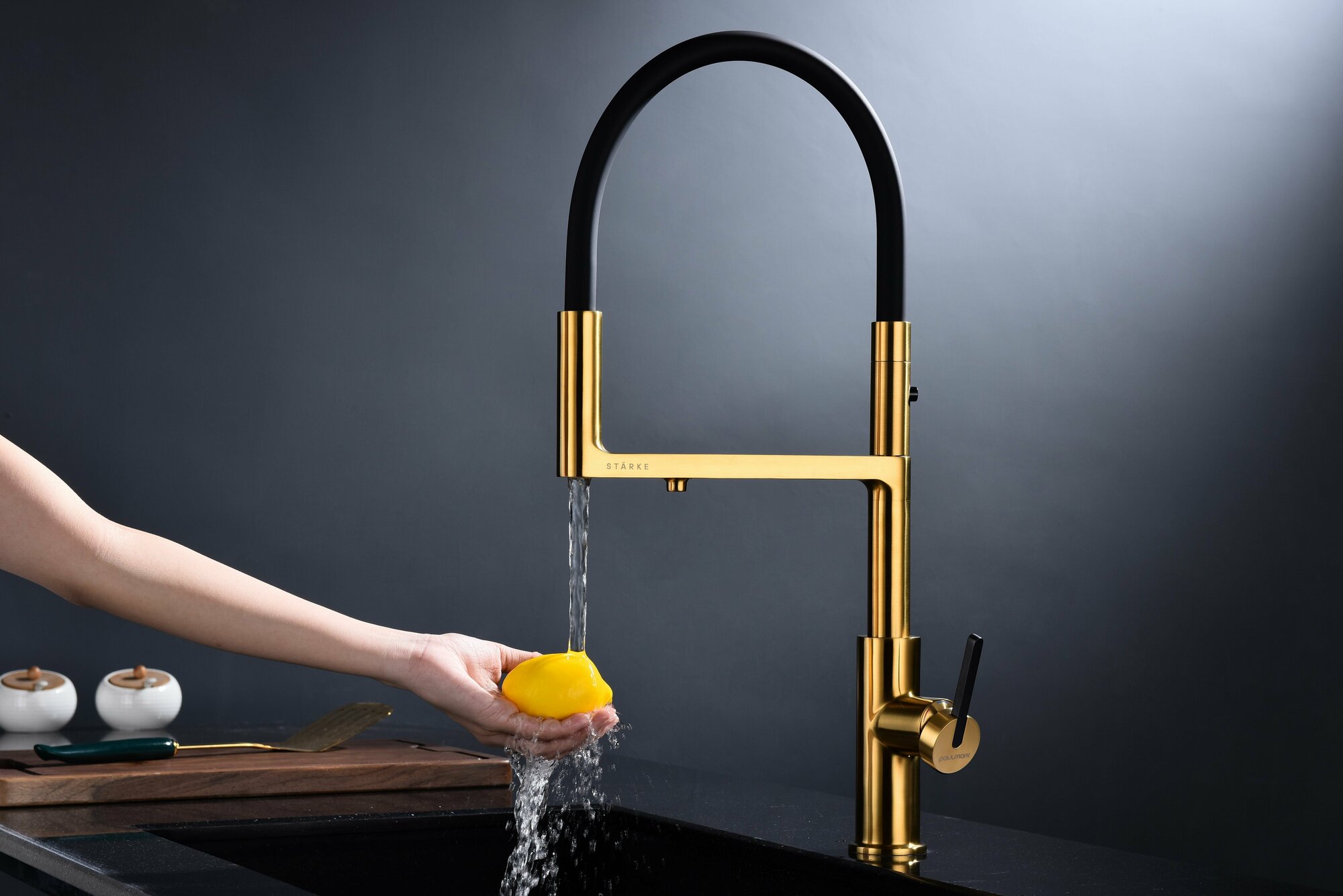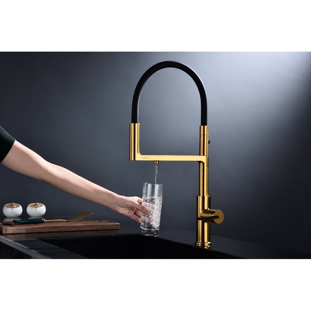 Отзывы о Смеситель для кухни Paulmark Tornado брашированное золото To213402-BG