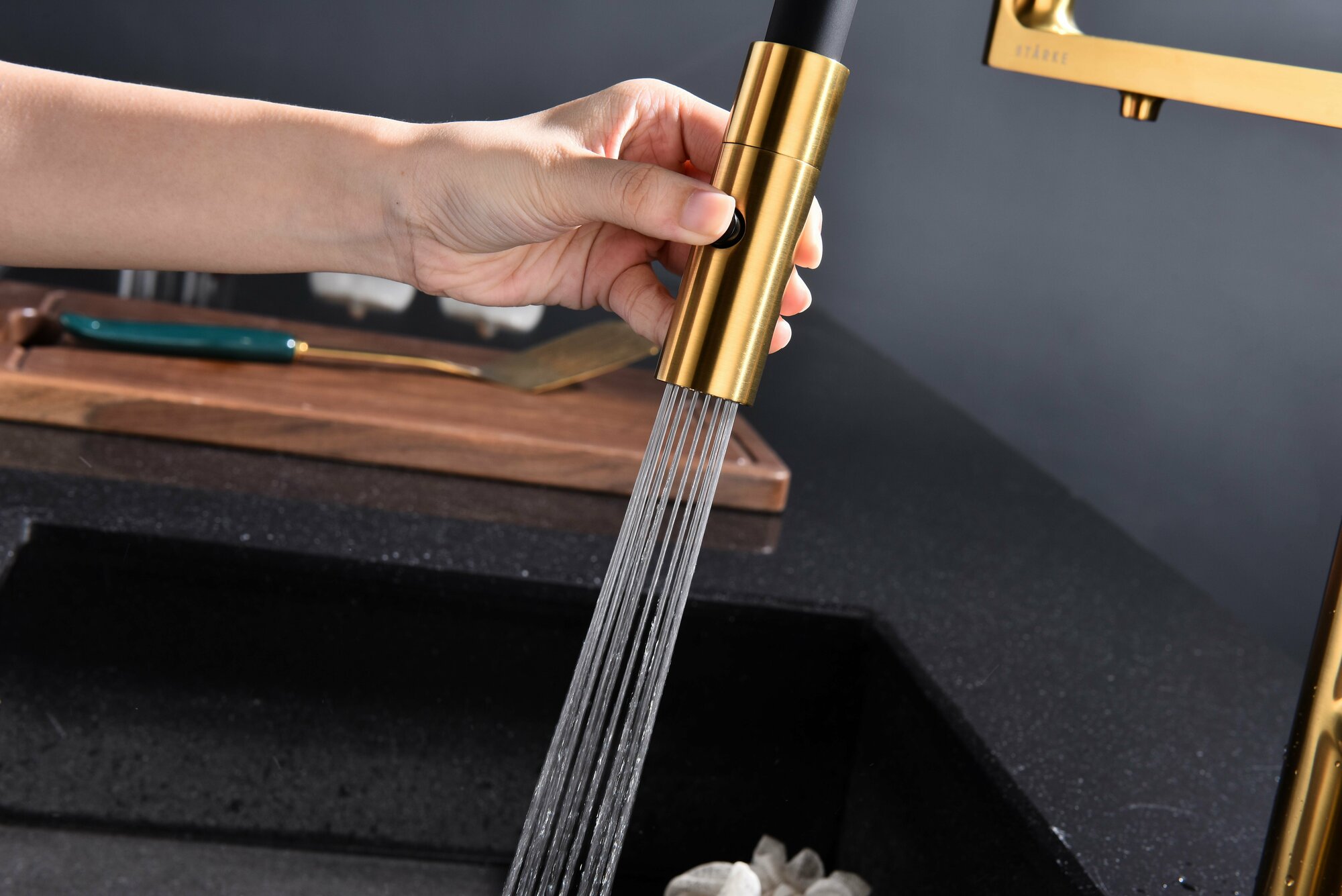 Смеситель для кухни Paulmark Tornado брашированное золото To213402-BG