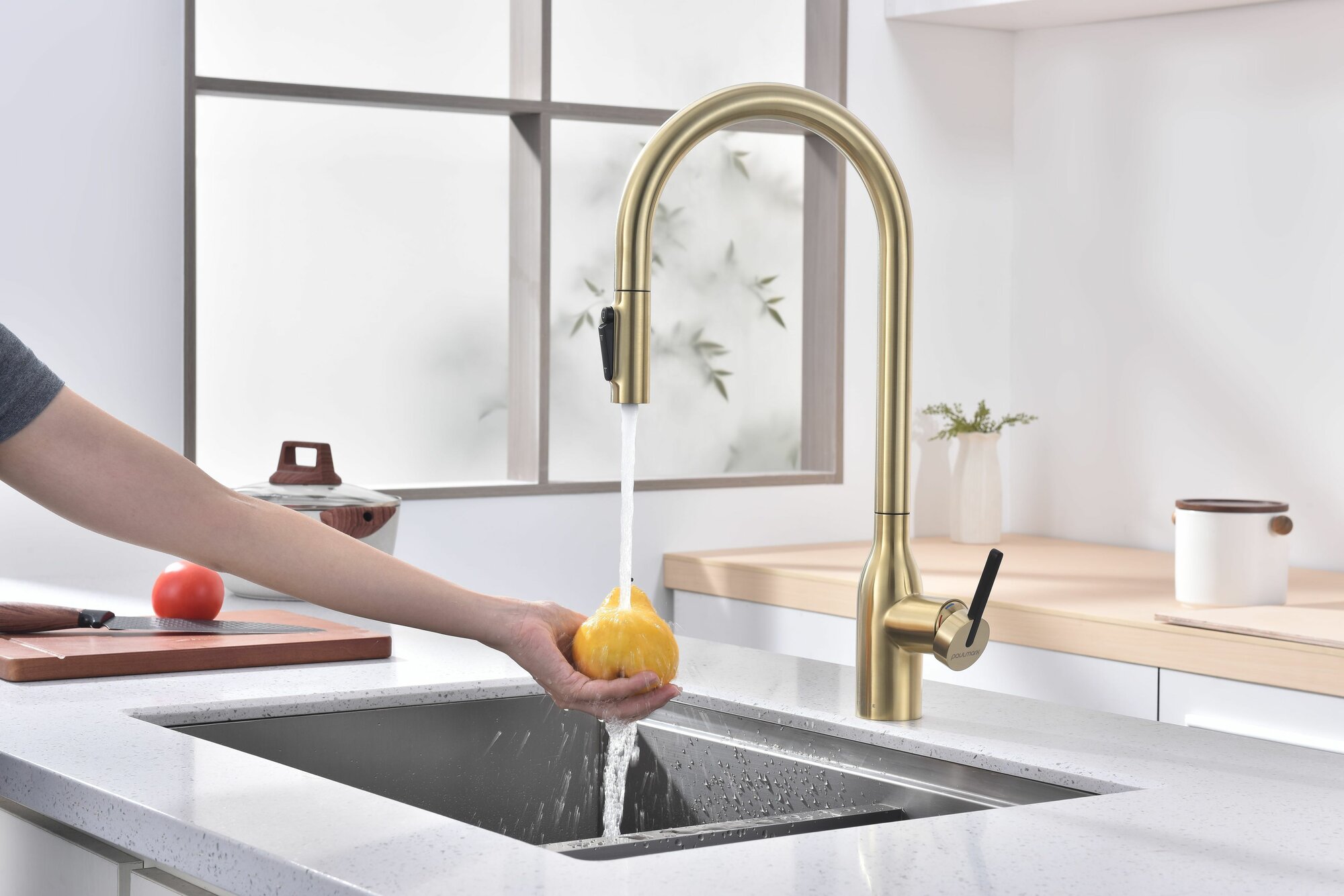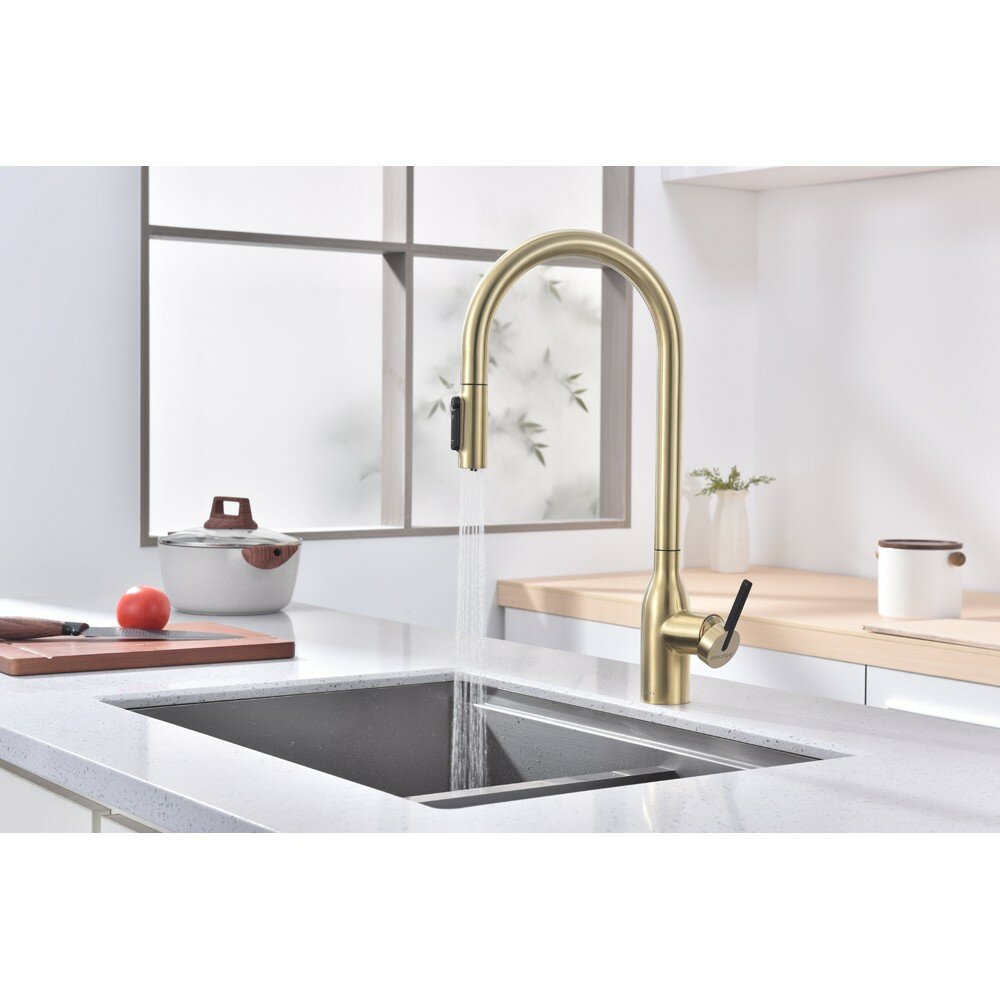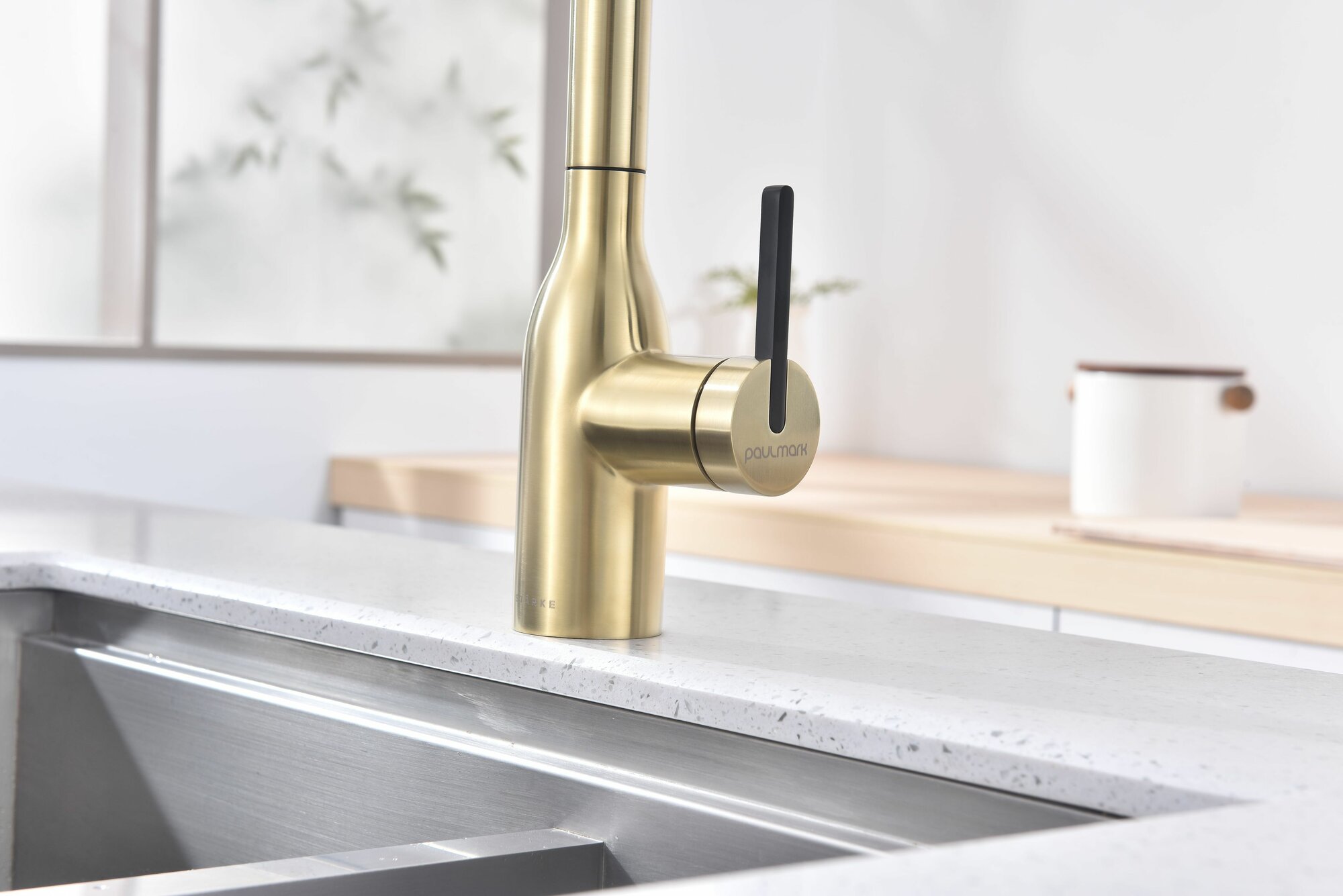 Отзывы о Смеситель для кухни Paulmark Universal Un213880-SBG светлое брашированное золото