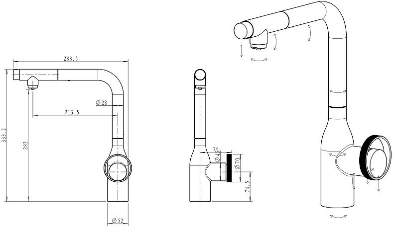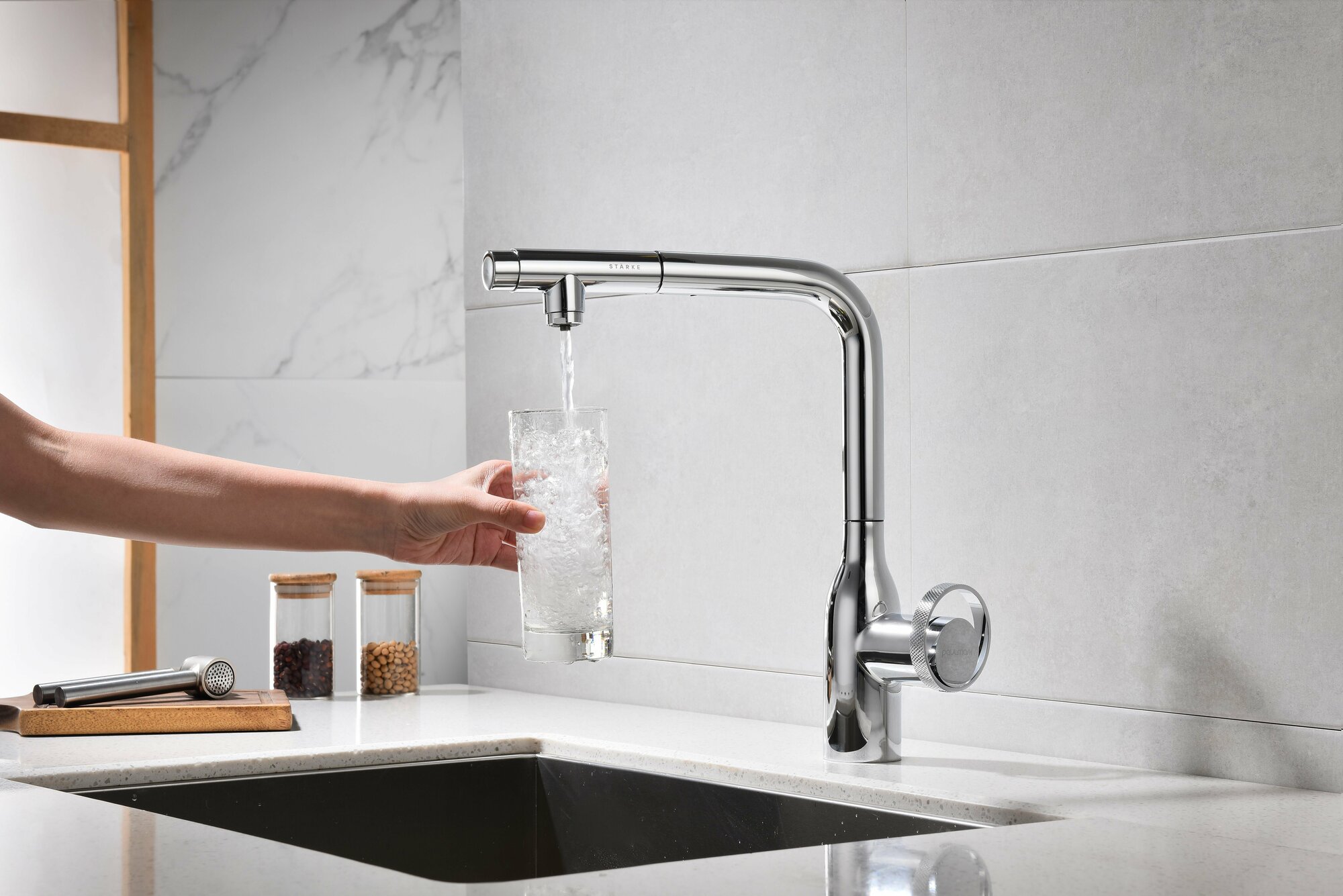выдвижной, гибкий, поворотный, Совмещенный излив для питьевой воды