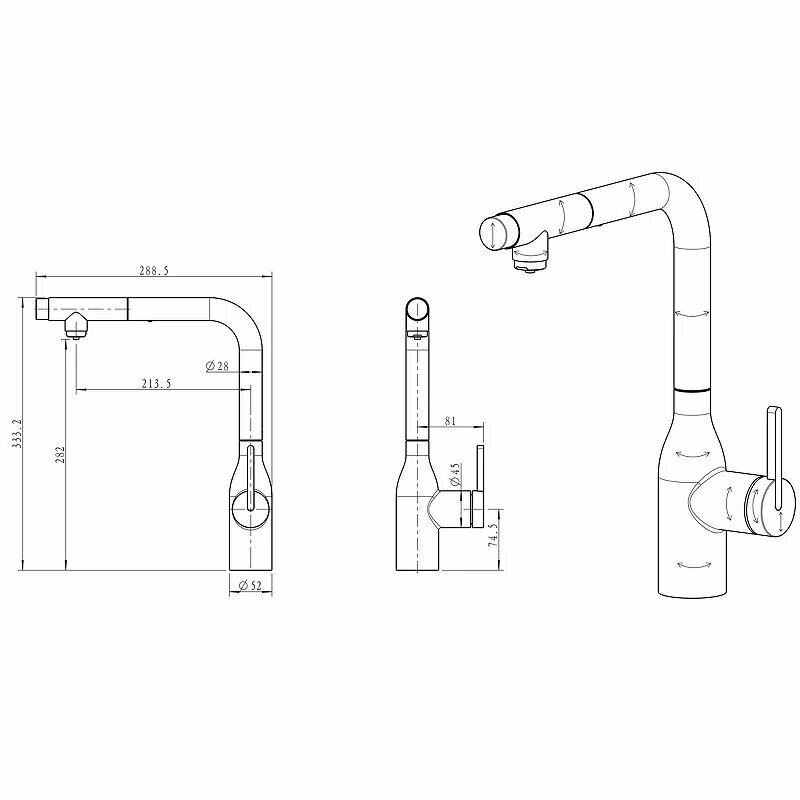 выдвижной, гибкий, поворотный, Совмещенный излив для питьевой воды