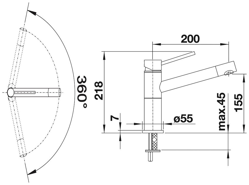 аэратор, встроенный фильтр, донный клапан, поворотный излив, система быстрого монтажа