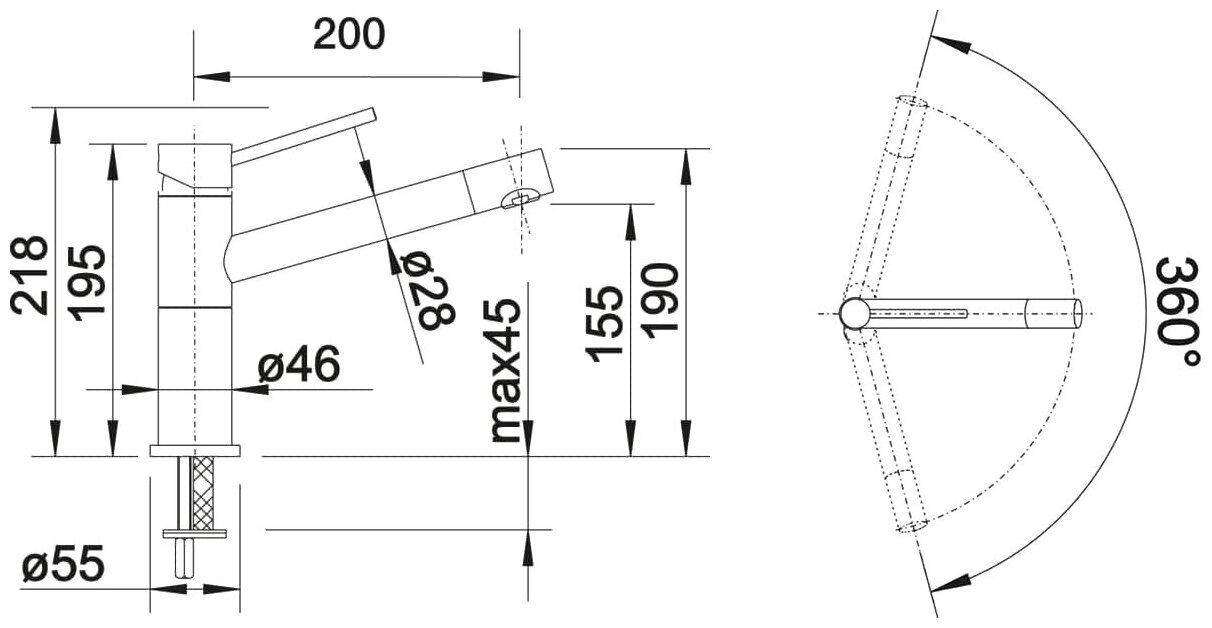 поворотный, Высокий, Длинный, высота 155 мм, длина 200 мм