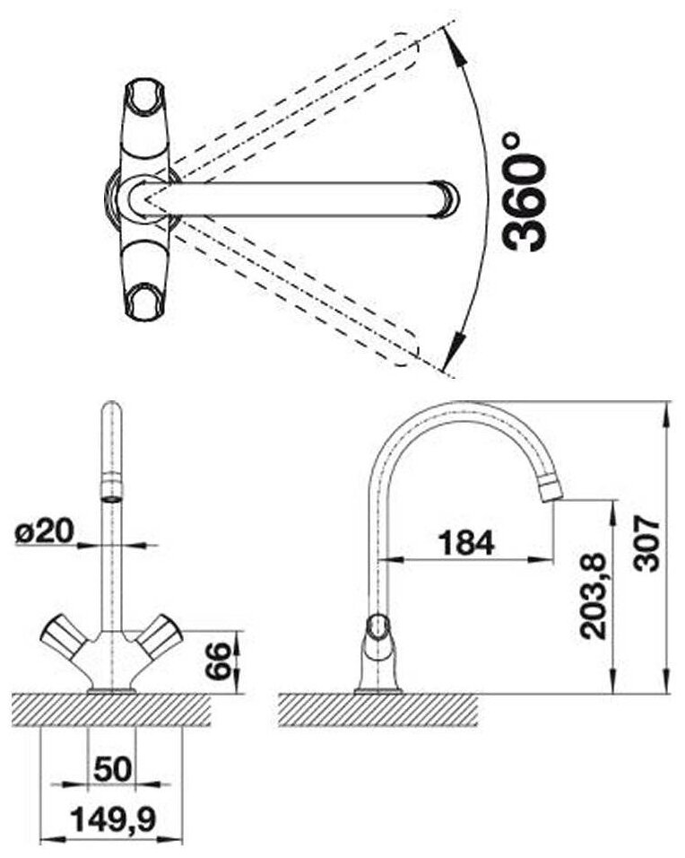 Смеситель для мойки Blanco AMONA хром/антрацит 520770