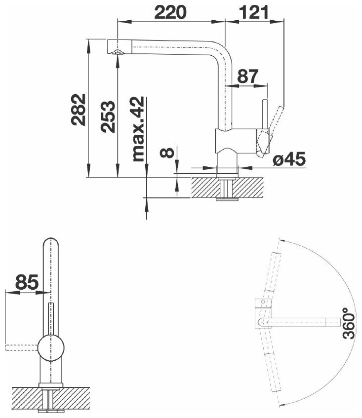 выдвижной, поворотный, Высокий, Длинный, высокий, высота 254 мм, длина 219 мм