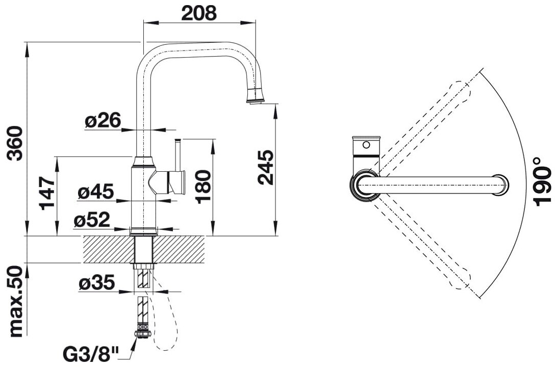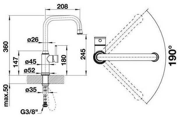 выдвижной, поворотный, Высокий, Длинный, высота 245 мм, длина 208 мм