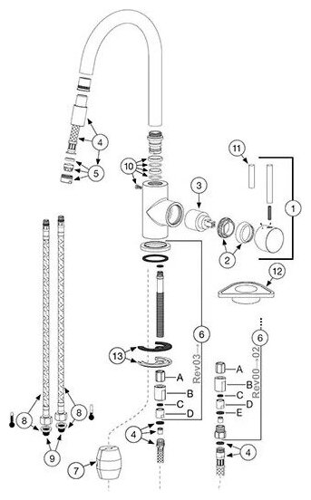 аэратор, встроенный фильтр, донный клапан, поворотный излив, Лейка