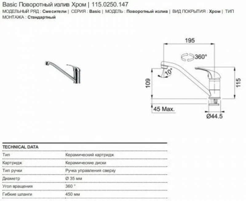 Смеситель для мойки Franke Basic хром (115.0250.147)
