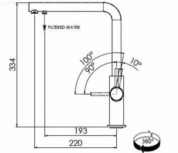 поворотный, Высокий, Длинный, длина 220 мм, с высоким изливом